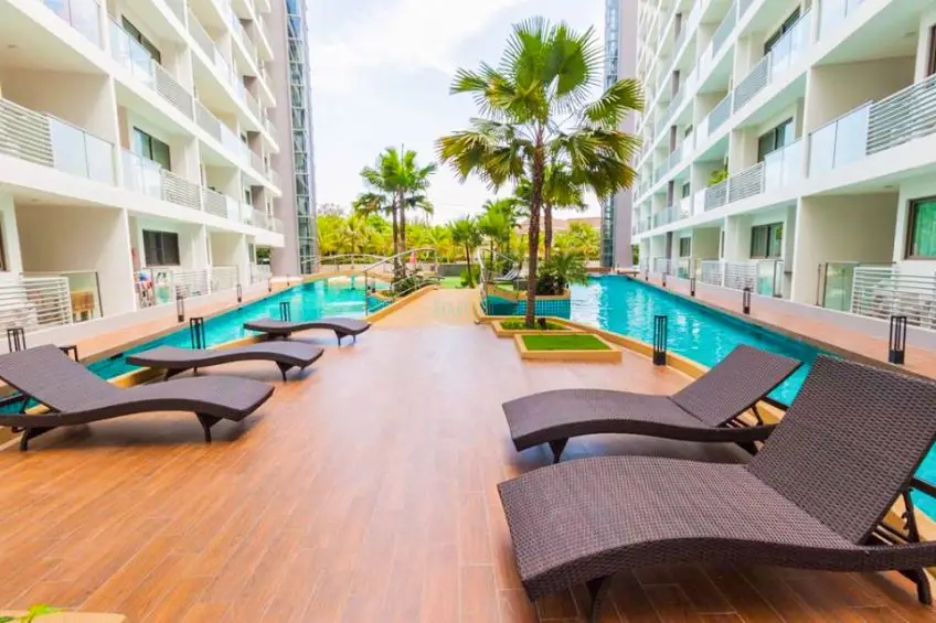 Laguna Beach Resort 1 a modern Resort style condominium project located at Jomtien 2nd road and just 900 meters from Jomtien beach. This 1 bedroom apartment is offered for long term rent fully furnished and comes with LED - TV, built-in wardrobe, air con, Euro kitchen and balcony with the view to the swimming pool. The building provides a large lagoon swimming pool, an artificial sand beach, Jacuzzi, Child's play area, sun deck area, fitness, underground parking, and 24 hr. security. For more information, please contact us now.Facilities