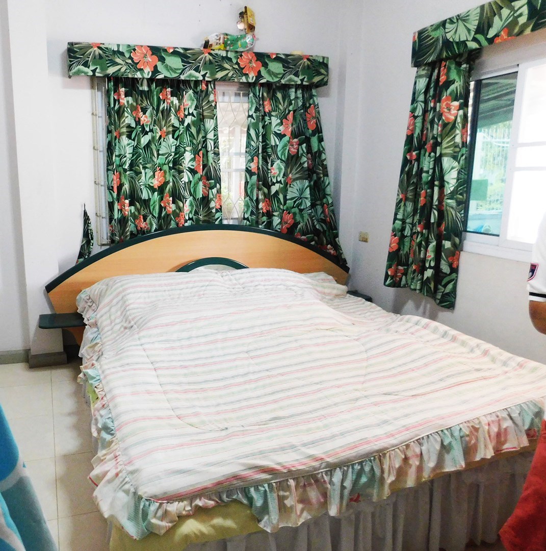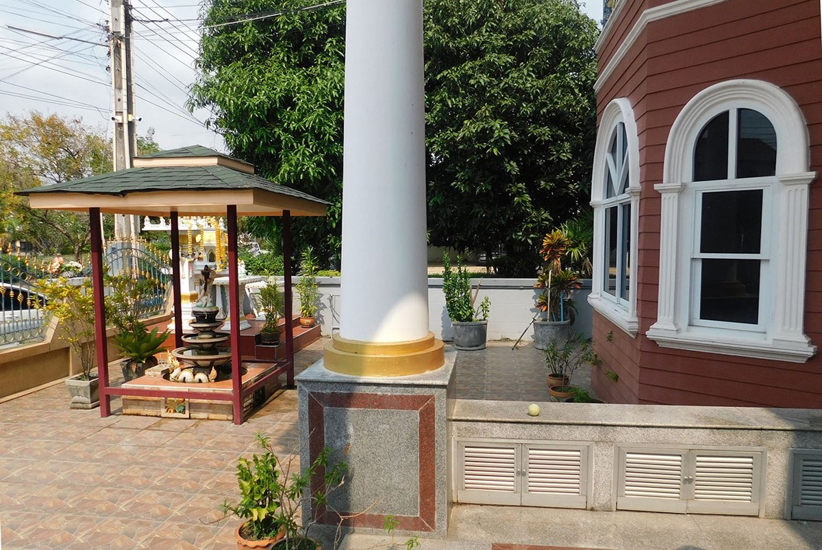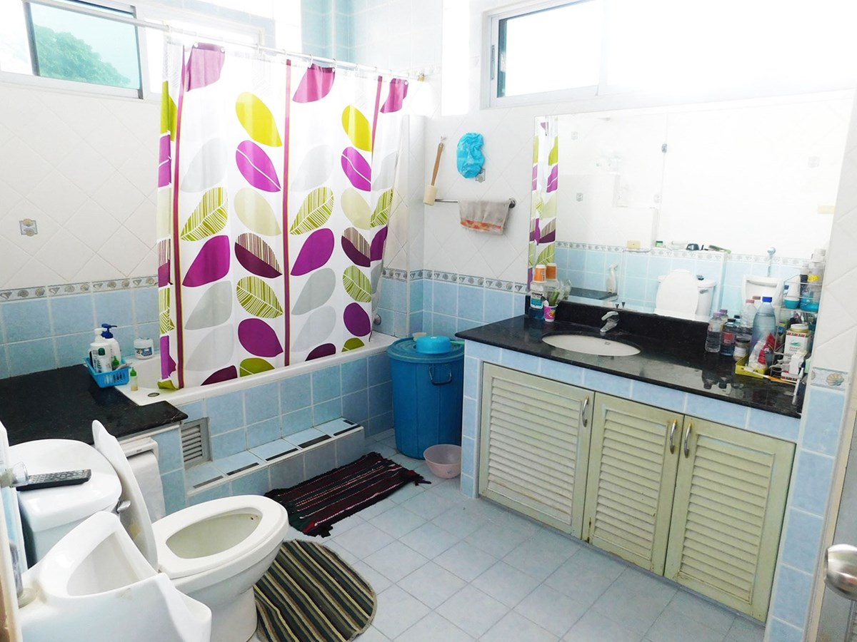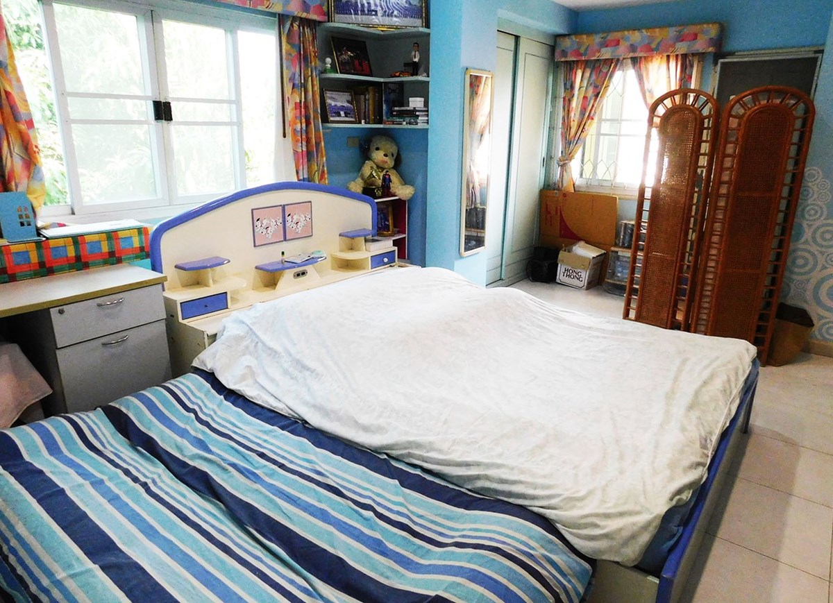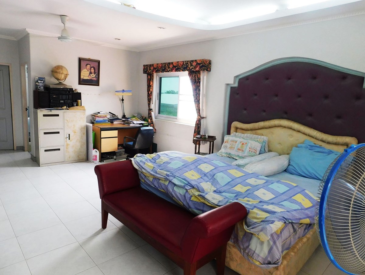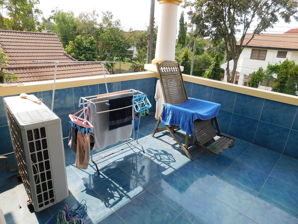 This large 2-storey villa is located in the residential area of Sinthawee Park in Ban Chang. The villa has 6 bedrooms, 5 bathrooms, 2 living rooms, a large kitchen, an office, a Buddha room, as well as a large terrace and several balconies. All bedrooms are equipped with AC and ceiling fans and all bathrooms with wall fans. The total housing area is 430 square meters.