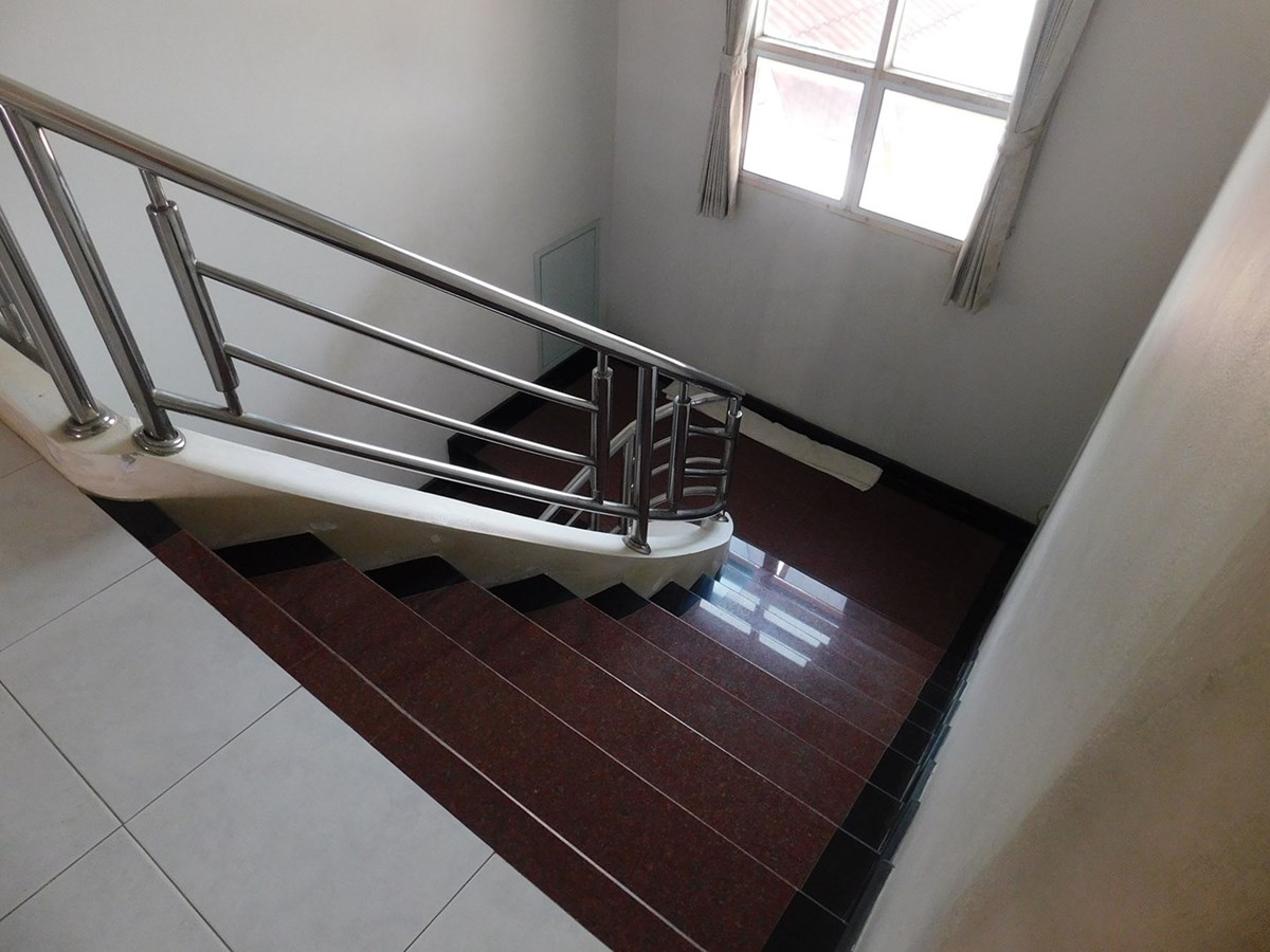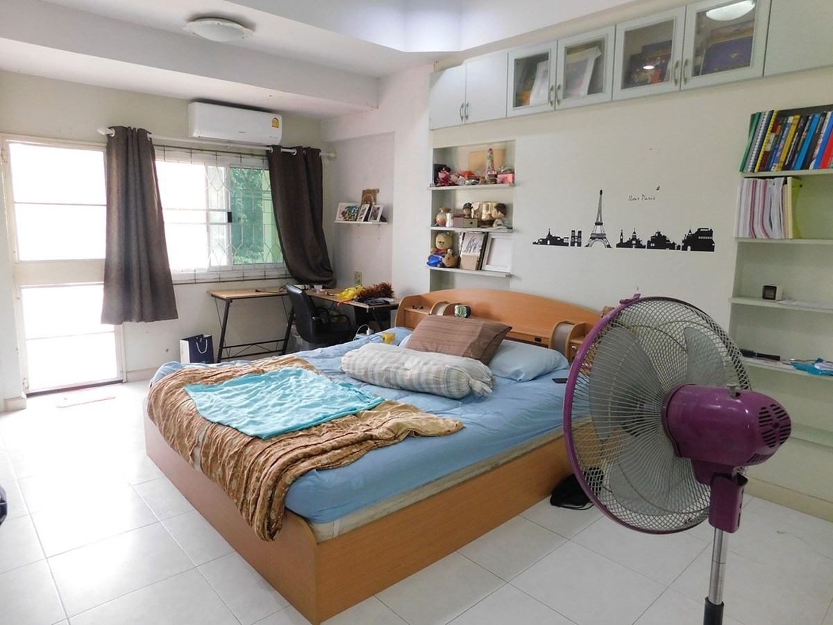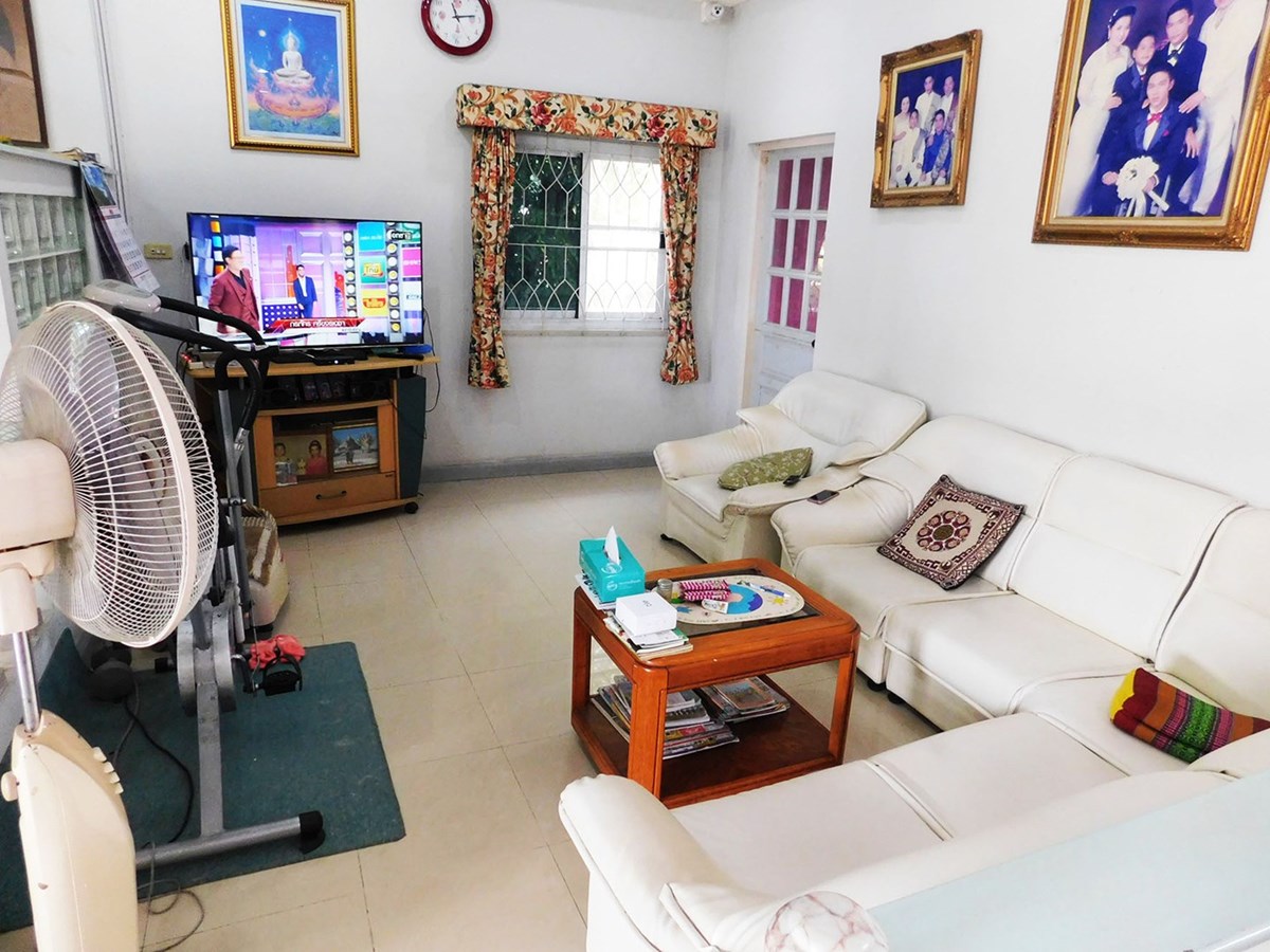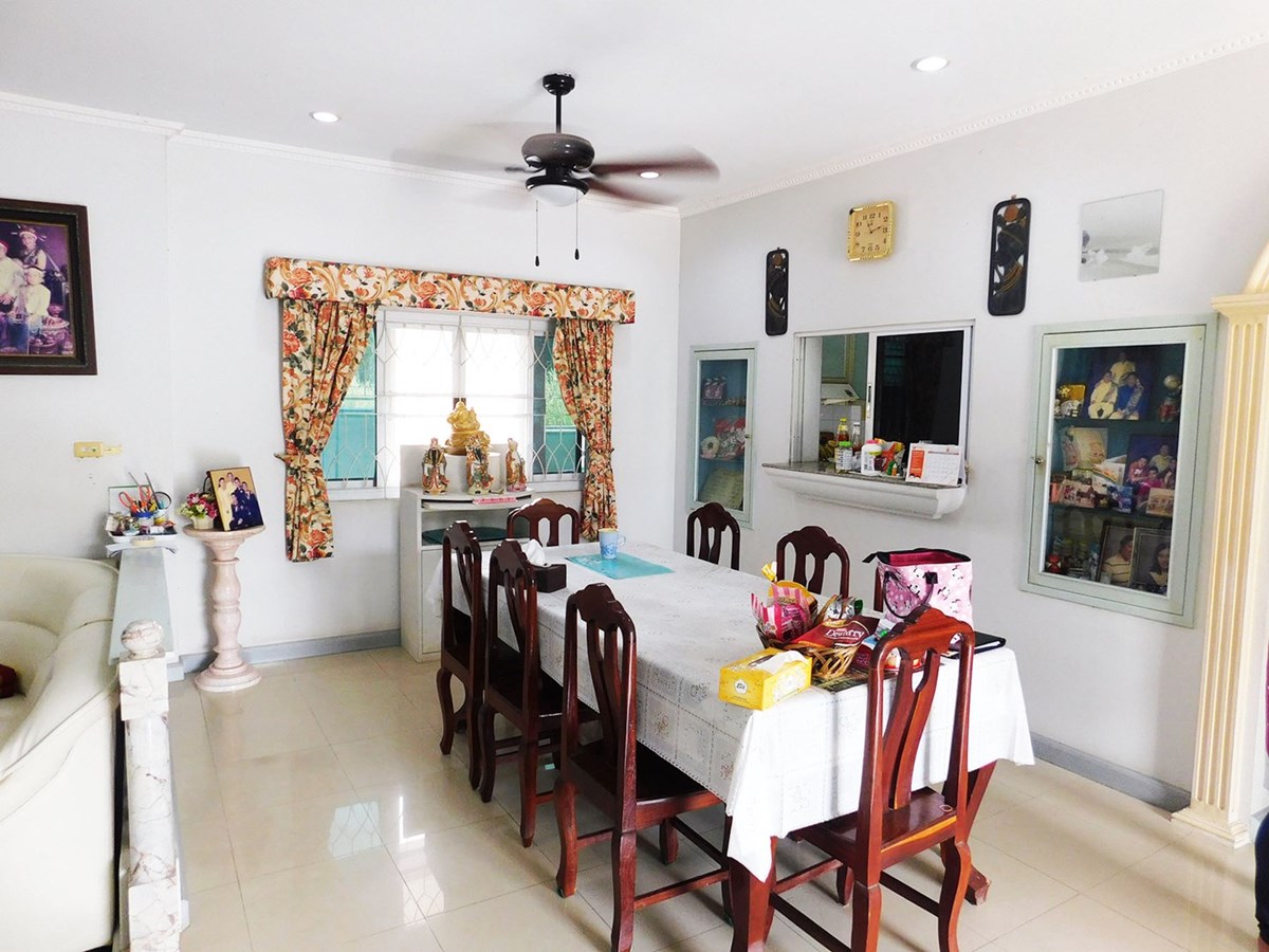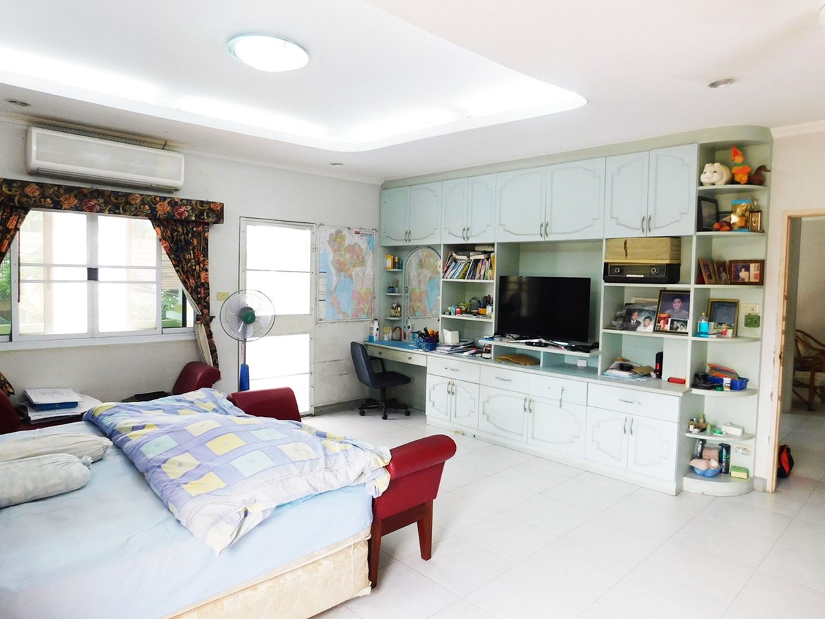 This large 2-storey villa is located in the residential area of Sinthawee Park in Ban Chang. The villa has 6 bedrooms, 5 bathrooms, 2 living rooms, a large kitchen, an office, a Buddha room, as well as a large terrace and several balconies. All bedrooms are equipped with AC and ceiling fans and all bathrooms with wall fans. The total housing area is 430 square meters.