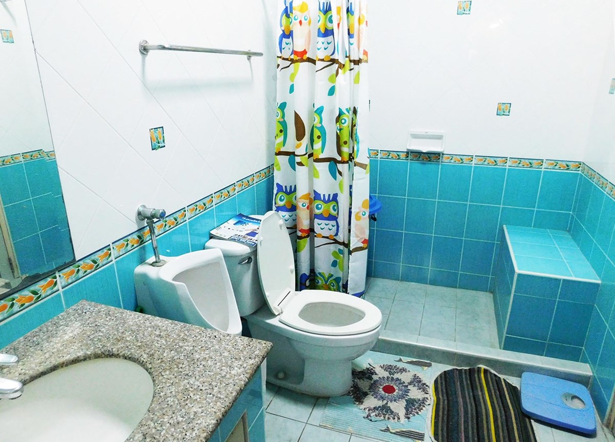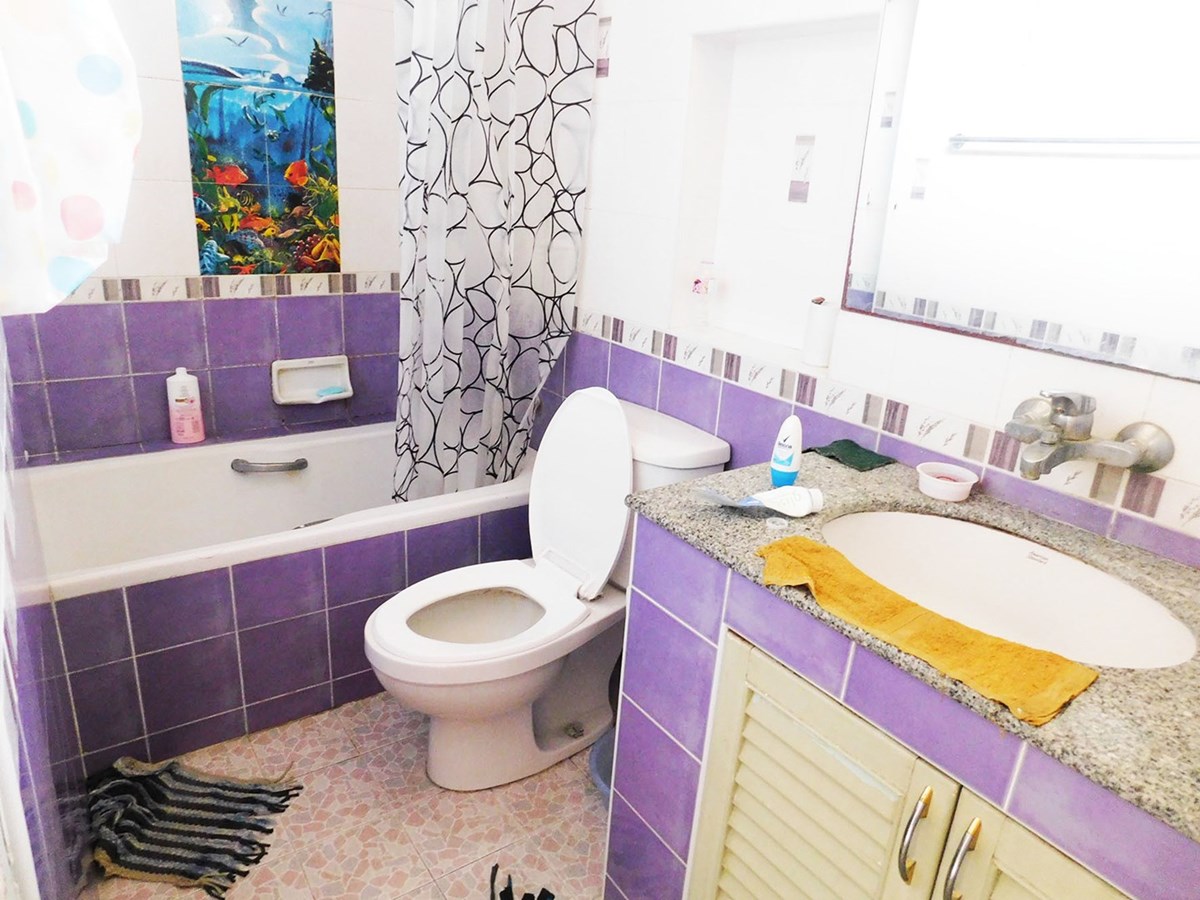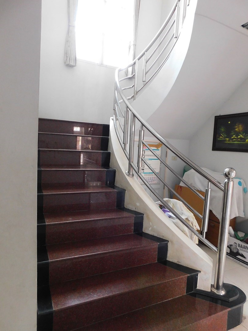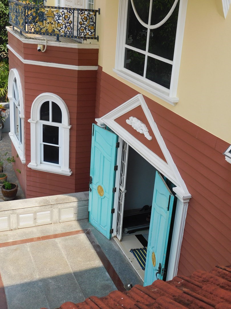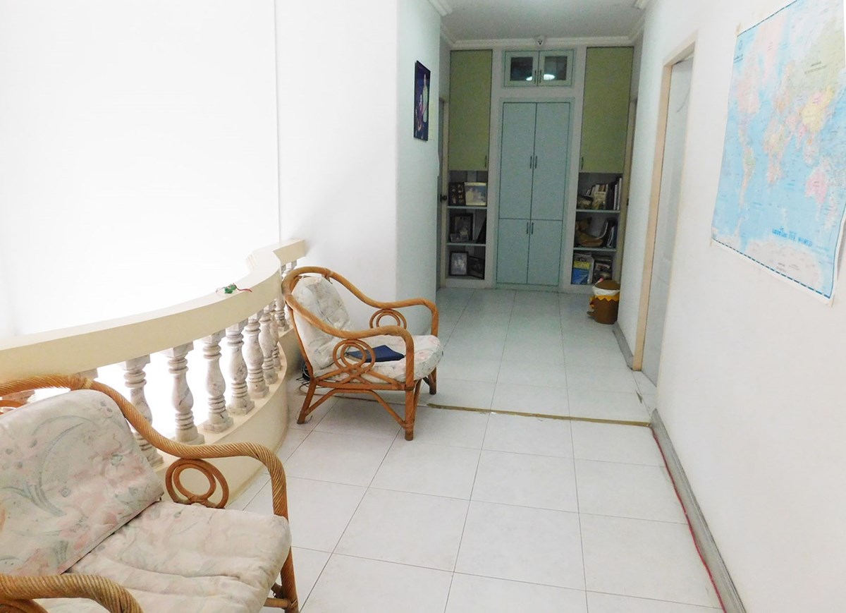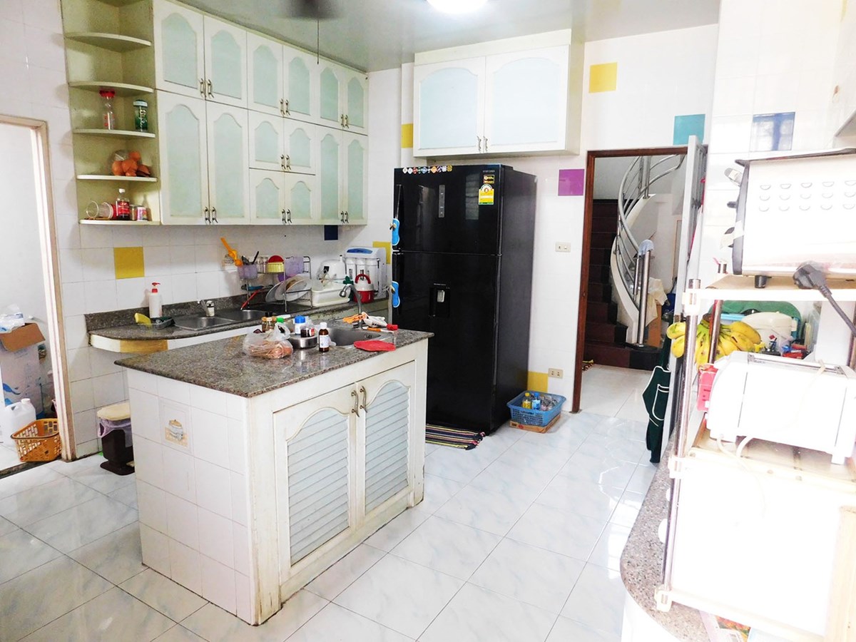 This large 2-storey villa is located in the residential area of Sinthawee Park in Ban Chang. The villa has 6 bedrooms, 5 bathrooms, 2 living rooms, a large kitchen, an office, a Buddha room, as well as a large terrace and several balconies. All bedrooms are equipped with AC and ceiling fans and all bathrooms with wall fans. The total housing area is 430 square meters.