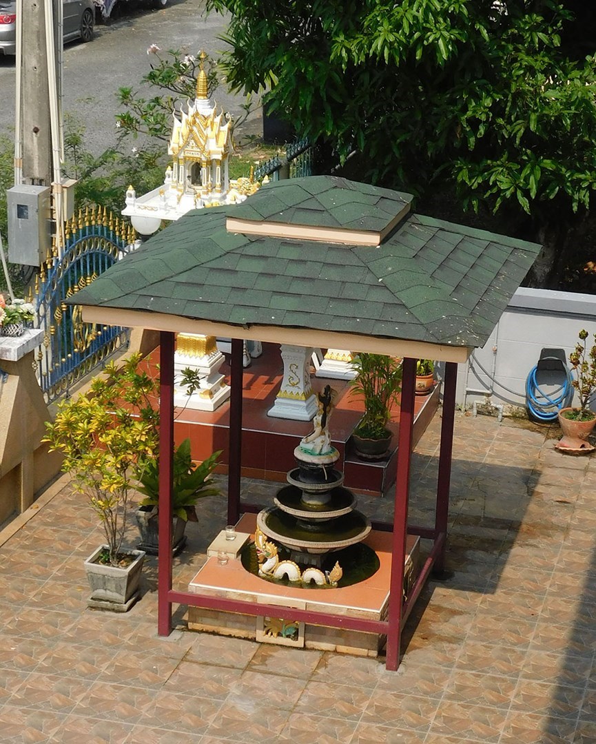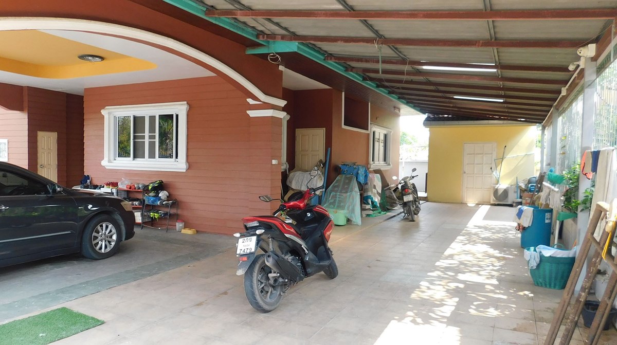 The plot, which is 508 square meters (127 square wa), has a carport for 4 cars and a storage room. The site is fenced with a wall and motor controlled gate with remote control. On the roof there are solar panels for heating hot water.