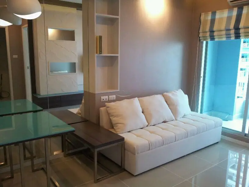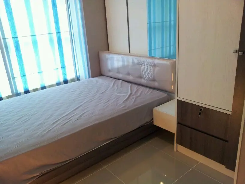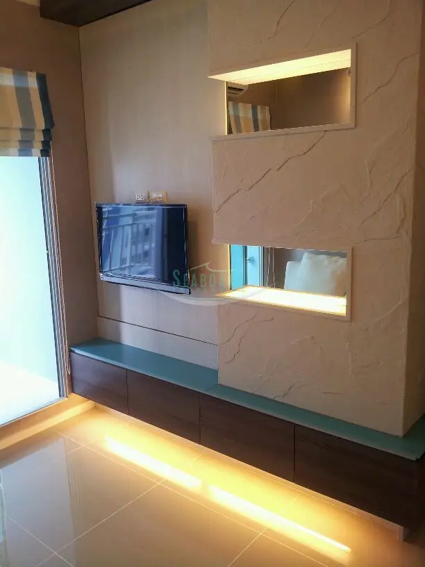 Lumpini Park Beach Condominium This high rise condominium is located in the Jomtien area, within walking distance of the beach. This 1 bedroom apartment is 28.6sqm and is located on the 15th floor of the building. The condo comes fully furnished, has a small kitchenette, has AC, built-in wardrobe and a LED-TV. Facilities of the project: 24 hour security, CCTV, key card access, covered parking area, juristic office with English speaking staff, communal swimming pool, gym, laundry area, library, games room, meeting room, children’s playground, cleaning service, Cable TV, etc. Available for rent with a minimum of a 12 month contract at 8,000 Baht per month.Facilities