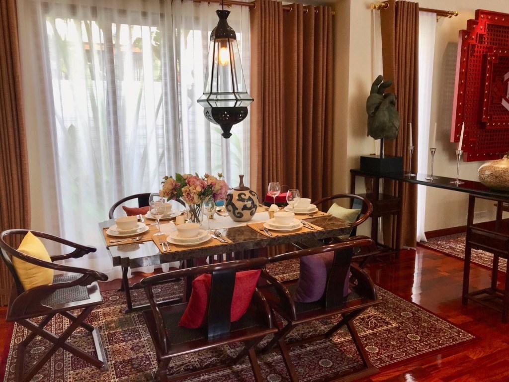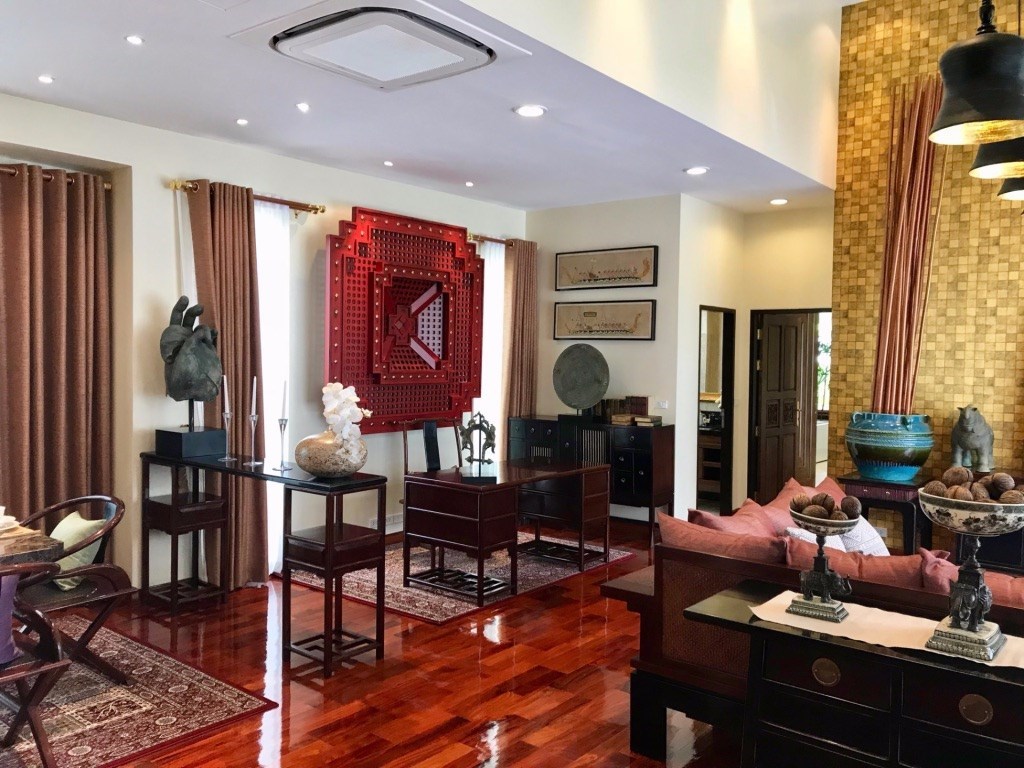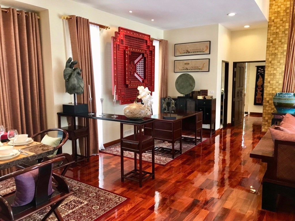 We have personally inspected this villa, just minutes from our office we would love to show it to you. Offered by the developer, superbly decorated and furnished in a classic oriental style, this pool villa combines luxury, security and pampering with a tropical lifestyle that includes a secluded garden, Sala and pool. Hardwood floors, vaulted ceilings and the highest standard of fixtures and fittings are featured throughout the property. The Pool Villa offers 3 bedrooms all with en suite bathrooms, a top quality European kitchen as well as a Thai kitchen and laundry area. There is a two car garage and ample storage areas. Just a short walk from the beach, this gated development has its own ocean access with private marina options. Conveniently located for access to motorways, airports, international schools and the many leisure activities the area has to offer. This property is a must see for the discerning buyer seeking a unique lifestyle property.