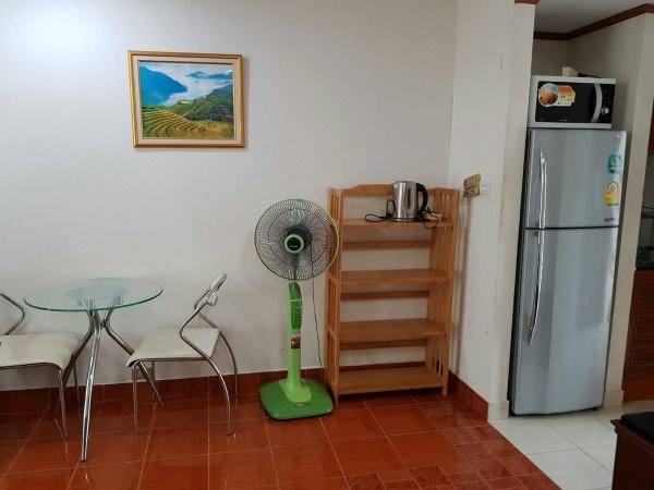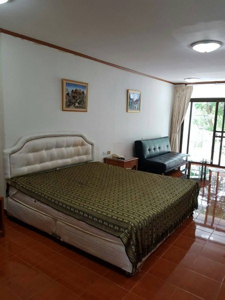 Large studio on 3rd floor, European kitchen and living room, balcony over looking the large garden-pool area,fully furnished, foreign ownership. 24 hours security.