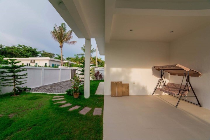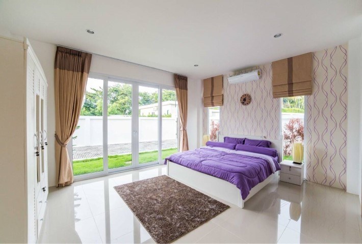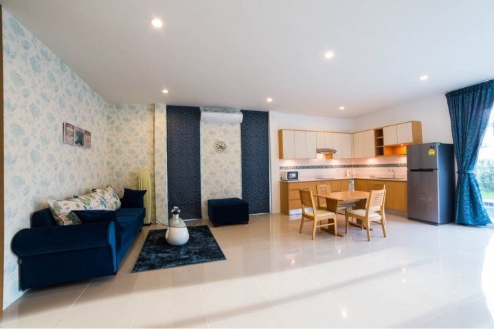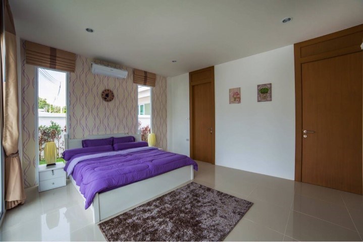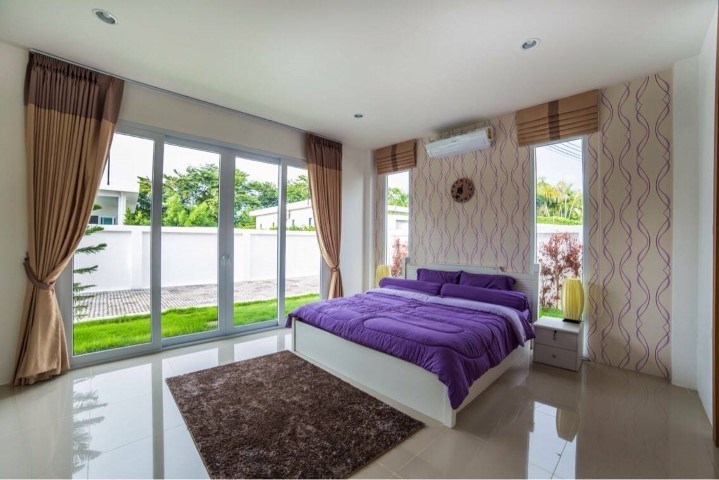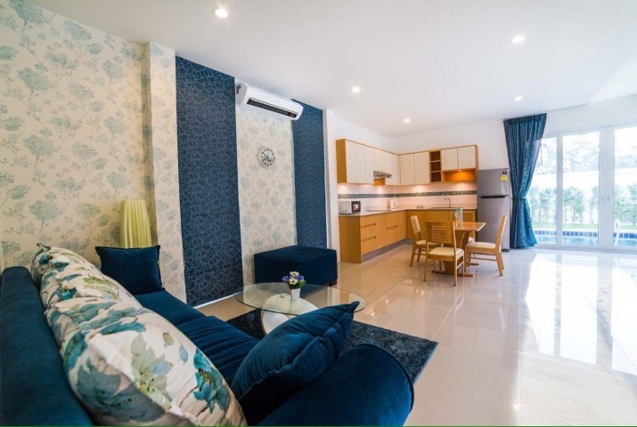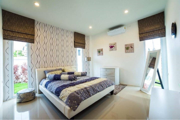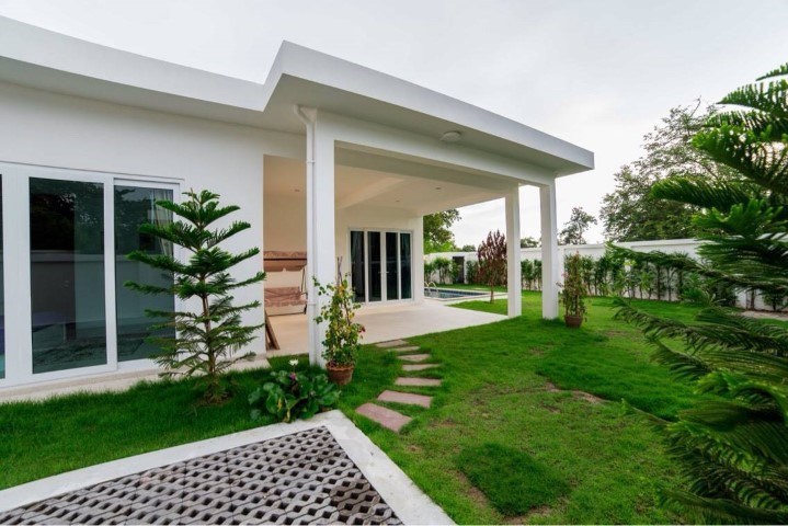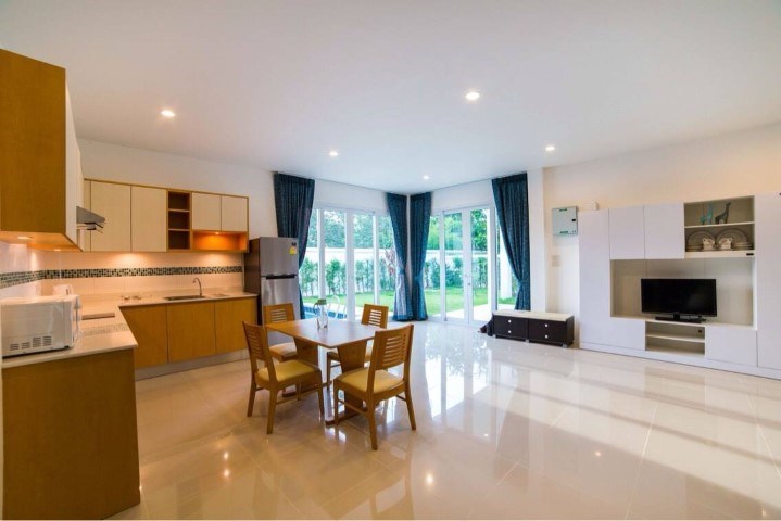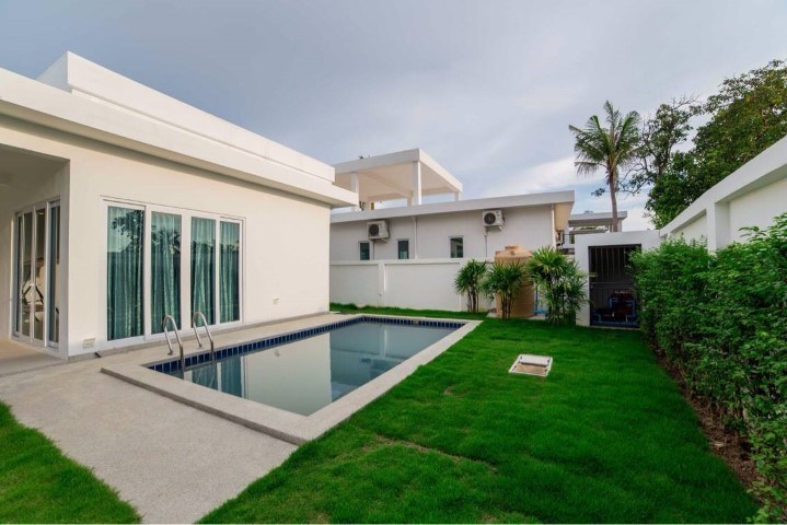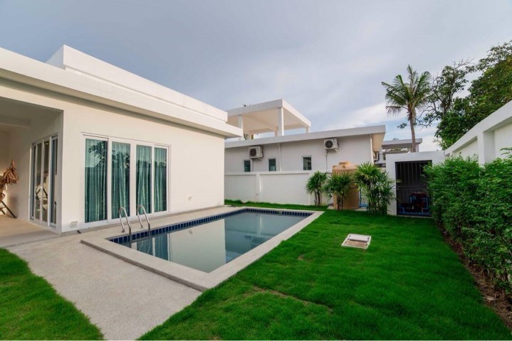 1 Storey modern style house with private pool and land scrape garden, car park ,2 bedrooms, 2 bathrooms, European, fully furniture, land size 332 Sqm (83 TW), living area 201 Sqm, 24 hour security.