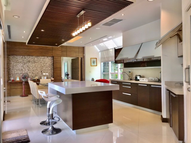 It features both a European kitchen and a Thai kitchen, catering to diverse culinary preferences.