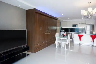 Nova Ocean View A spacious, western-style 1 bedroom apartment with balcony on Pratumnak Hill. This apartment has been refurbished and furnished with great attention to detail. The apartment has a fully fitted European kitchen including a washing machine, a separate bedroom with ample storage, and 2 bathrooms both finished to modern, western standards. It is offered for long term rent, minimum of 6 months contract at 28,000 Baht per month, 12 months at only 26,000 Baht. Please contact us now for more details.Facilities