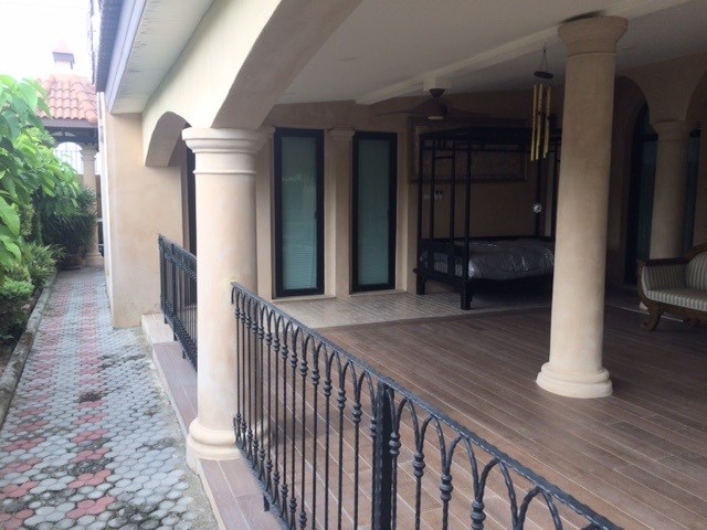 Luxury 3 bedrooms pool villa, elegantly decorated with a shower bathroom created with marble and featuring classic Tuscan beam ceilings, 3 bathrooms, the living room and the large terrace with private pool and beautiful landscape garden, fully furnished, European kitchen, 24 hrs security, located at Baan Amphur, just opposit Cartoon network water park.