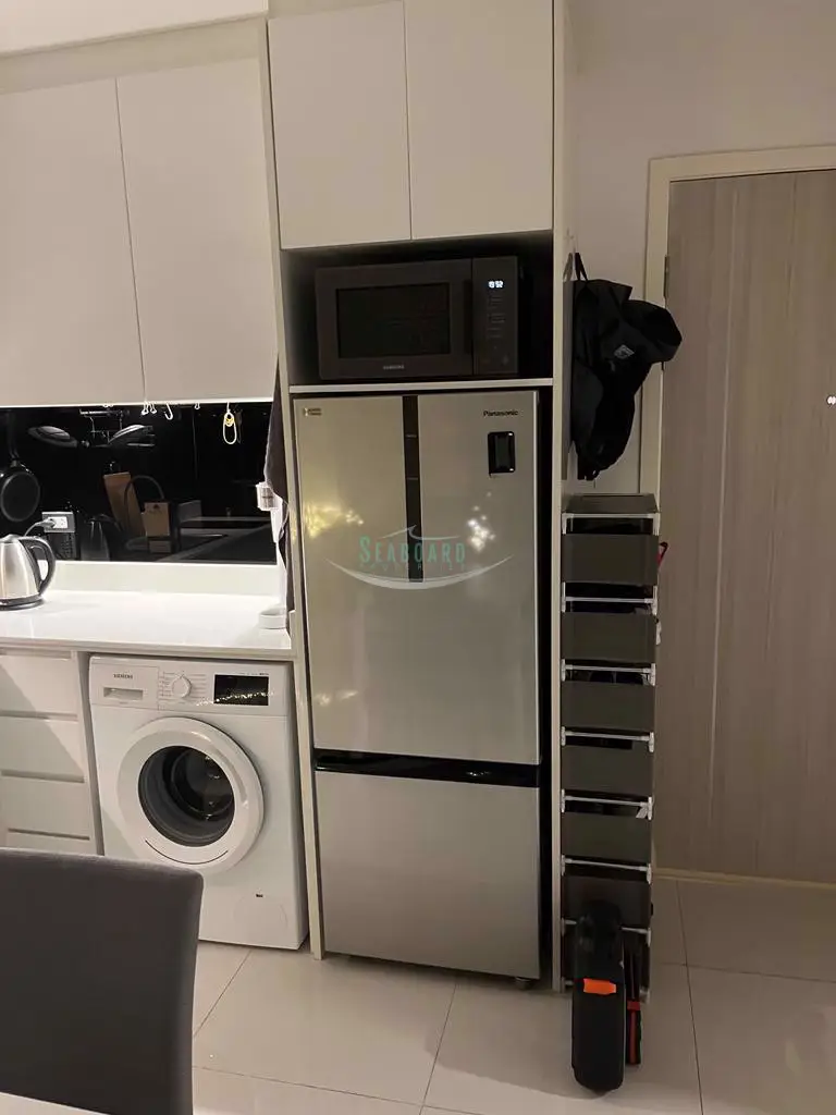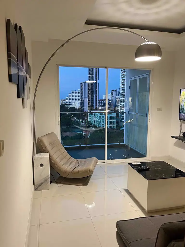 This modern one-bedroom, one-bathroom condo is on a high floor and offers 51.30 sq.m. of living space, including a balcony. The Condo is fully furnished and equipped with a washing machine. It features a contemporary European kitchen, a dining area, a living room, and a balcony offering stunning views of the sea and city. The condo is available for sale under foreign ownership and is ready for immediate move-in.