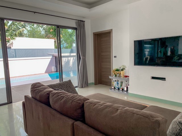 Super stylish house in show room condition, fully loaded with new furniture, 4 air cons, kitchen with micro, oven, dishwasher,2nd kitchen /pantry, double garage, private pool, 2 en-suite bedrooms, guest WC. A 3rd bedroom en-suite can be added if required.