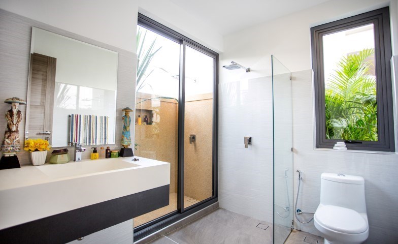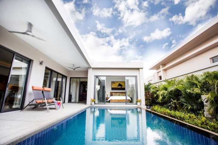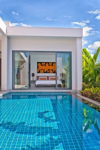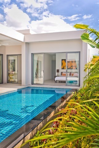 Luxury modern style pool villa with beautiful landscape garden and large swimming pool, fully furnished with high quality furnishing, land size 100 TW (400 Sqm), living area 128 Sqm, 2 bedrooms, 2 bathrooms, 1 guest toilet, European Kitchen, 24 hour security, located at Mabprachan lake , quiet area, close to Regent International School, Rugby International School, Siam Country Club golf course, many popular restaurants, minimart, new highway to Bangkok