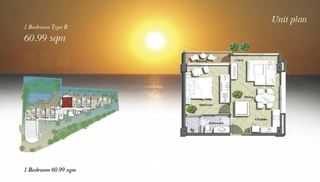Luxury beachfront condo for sale on floor 6th , corner unit with fantastic sea view, living area 60.99 Sqm. 1 bathroom, European Kitchen, fully furnished with high quality furnishing.
