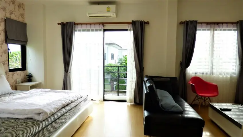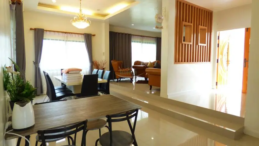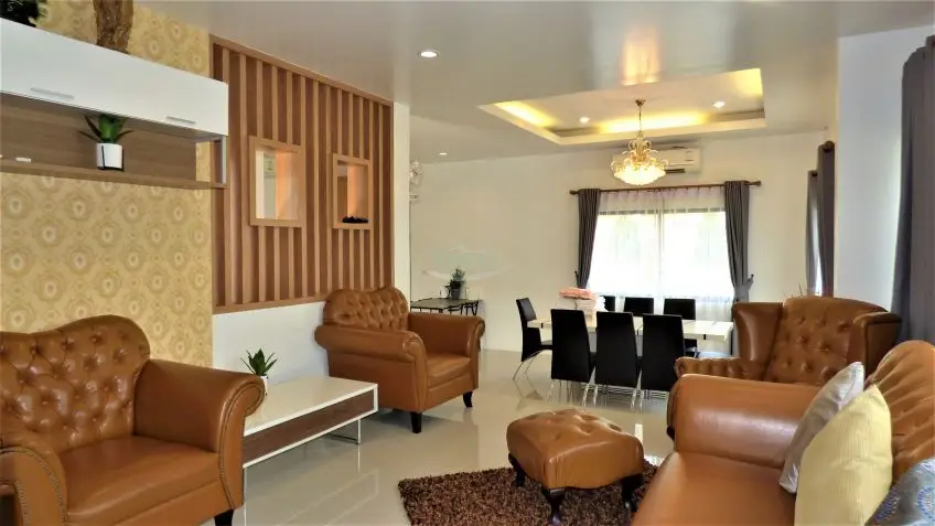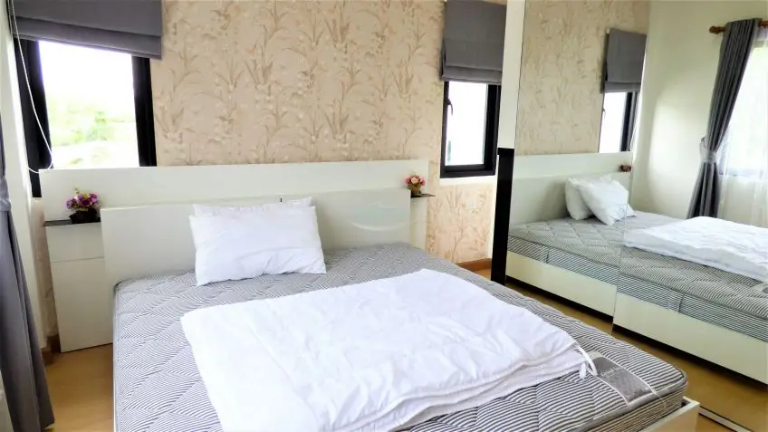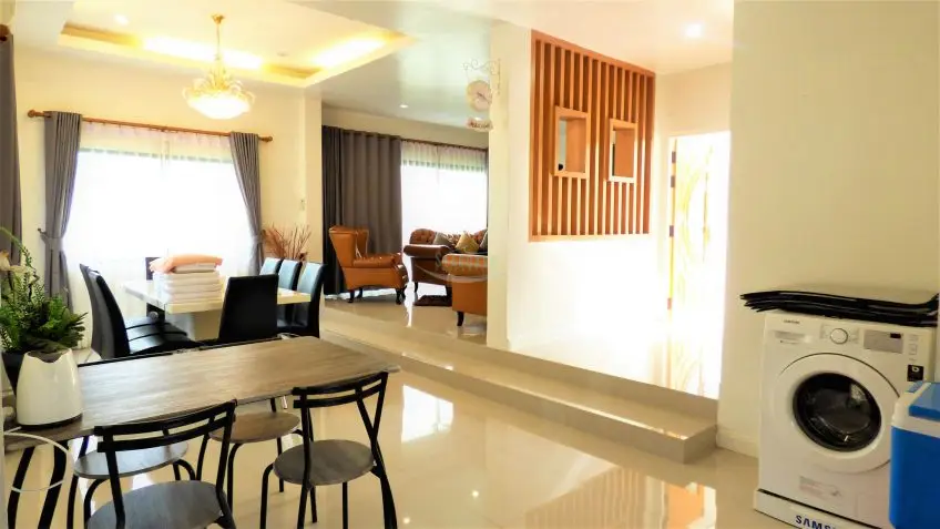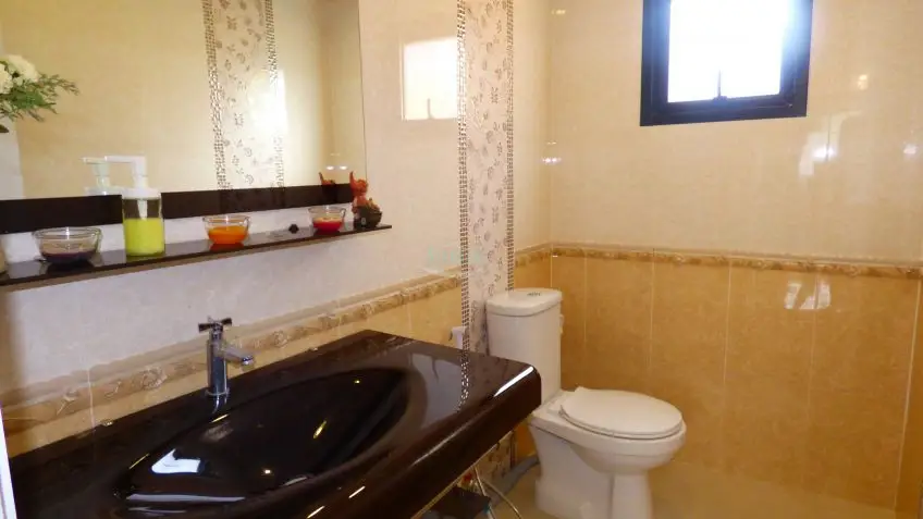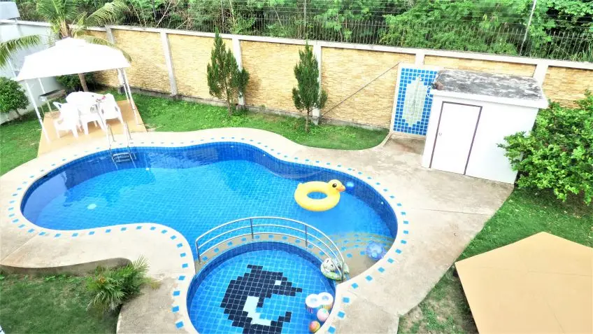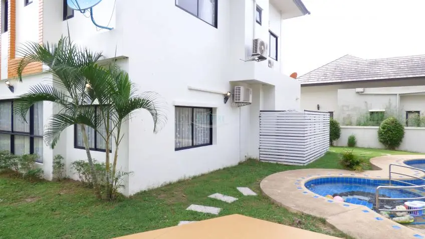 Patta Village Two-story detached home with 3 bedrooms and 4 bathrooms, situated on one of Pattaya's gated residential villages. The house has a private pool, is fully furnished, al up to western standards. There is a fitted European kitchen with a washing machine, lounge/dining area and a bathroom on the ground floor. Upstairs are 3 air-conditioned bedrooms, 3 bathrooms and storage space. The house has a large garden and off-road parking and is located on a quiet part of this secure village. Patta Village features a large communal pool, fitness center, children’s play area, and excellent 24/7 security. It is situated a short distance from local Thai markets, convenience stores, local restaurants, and schools. For more information and to arrange a viewing, please contact us now.Facilities