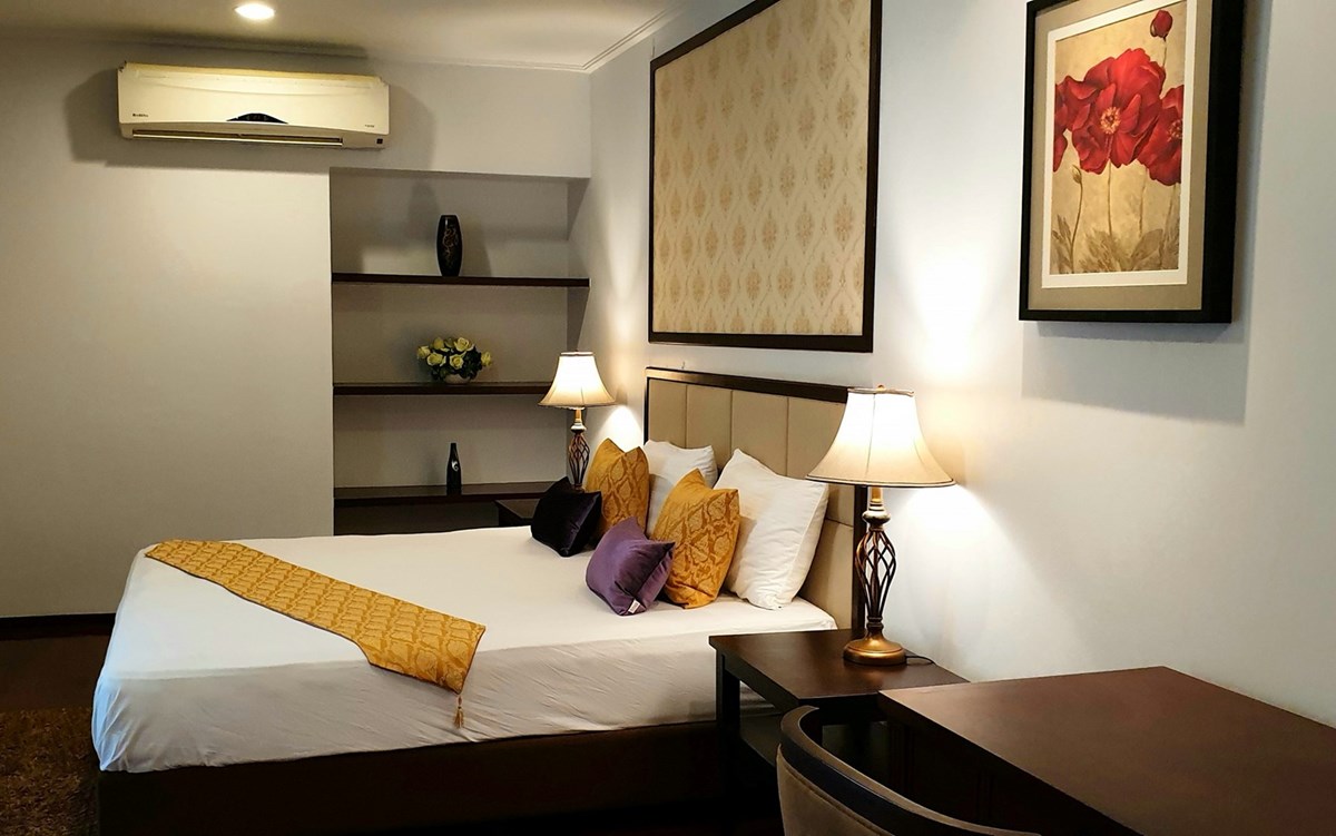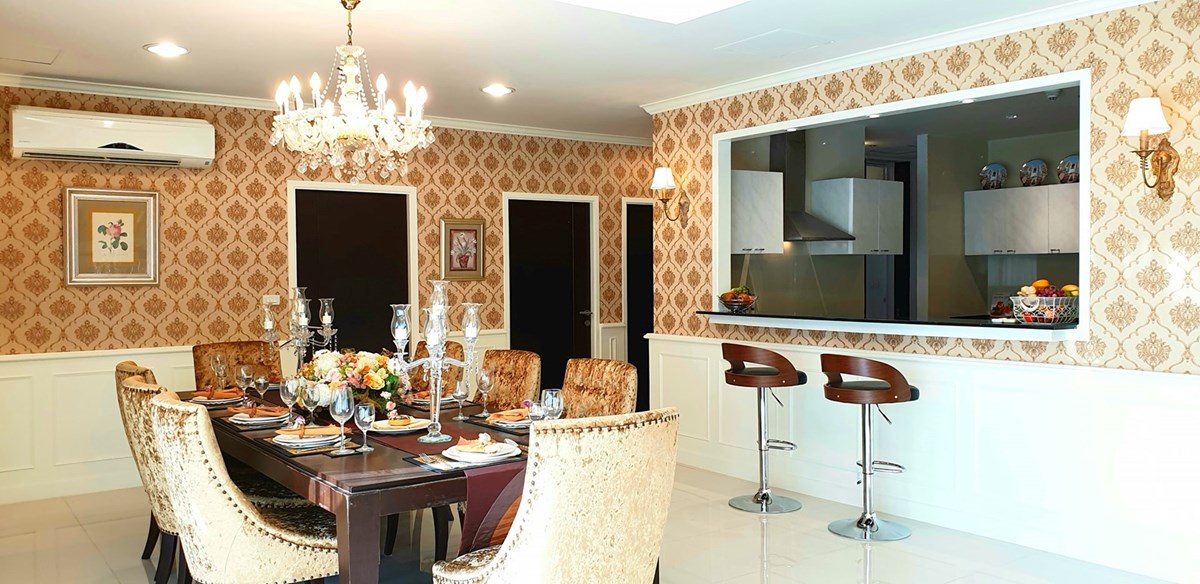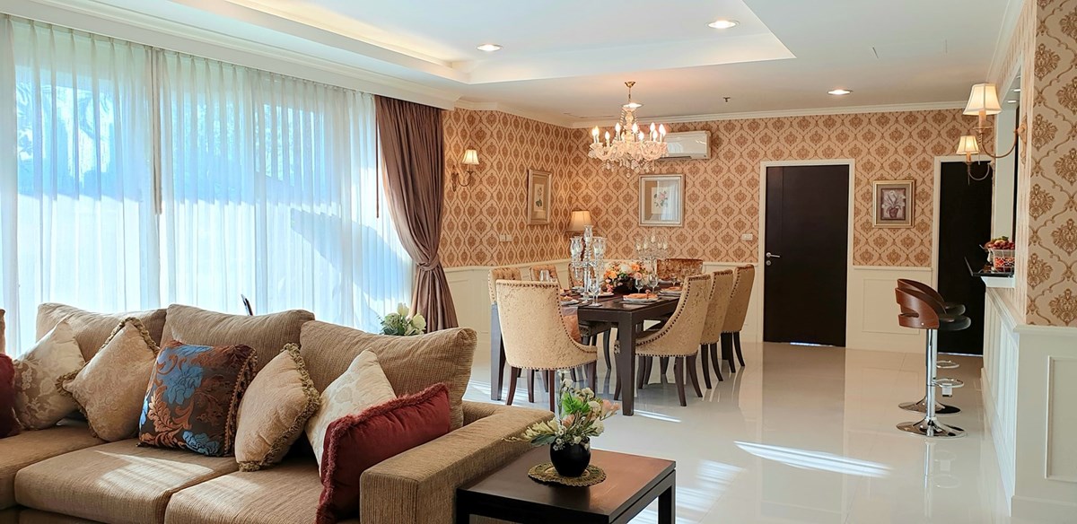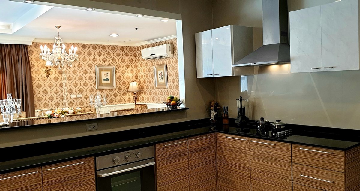 This is a spacious 4 bedroom, 4 bathroom penthouse type apartment for rent at Piyathip Place in Bangkok's Phrom Phong district. The fully furnished property measures 650 sqm and is situated on the 9th floor with a large terrace. This penthouse has all the appliances one requires for a comfortable lifestyle as well as a maid's quarters. Piyathip Place boasts some of the best facilities in the area, including swimming pool, gym, sauna, squash court, basketball court, playground, jogging track, library, salon, restaurant, parking, security service and shuttle service. The local area is home to numerous schools, healthcare facilities, restaurants and shops, as well as Emporium and Emquartier luxury shopping malls, Benjasiri Public Park and Phrom Phong BTS Skytrain Station.