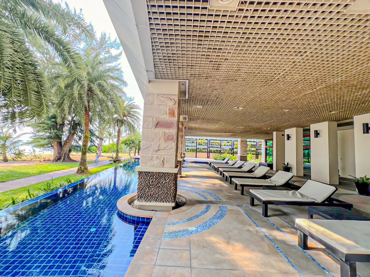 Pineshore Condominium stands out for its unique location directly on Na Jomtien Beach, offering residents the luxury of beachfront living. Situated close to popular spots like the Glass-House and Bacco Beach, residents can enjoy easy access to entertainment and dining options.