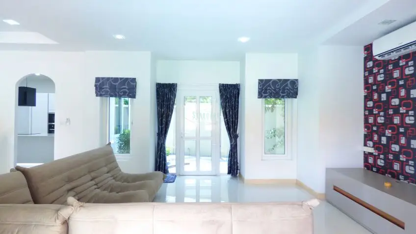 Nathekarn Park View Home with pool This family 3 bedroom home is now offered for sale and rent, located in East Pattaya along Mabprachan Lake road. A recently renovated, spacious 2 storey house with garden and private pool, up to high western standards. A house with high ceilings and open spaces inside and outside, with a large roofed terrace and balcony upstairs, a carport for 2 cars. The house is fully furnished, including a modern, western-style kitchen with an island, and fully equipped with appliances. It is a high-quality property located in a well managed and secure compound, offered for a fair price, great value. For more information, and to arrange a viewing, please contact us now.Facilities