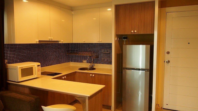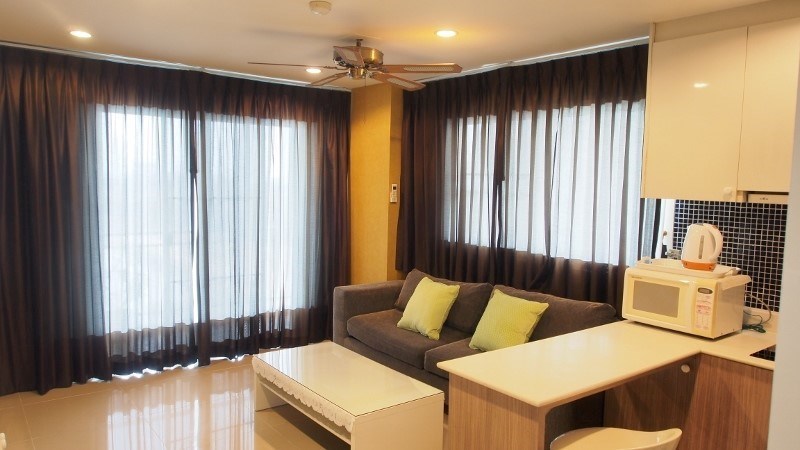 Brand new 1 bedroom on 8th floor (top floor) sea and pool view, living area 50 Sq.m.. 1 bathroom, 2 air cons, 2 flat screen TVs, electric hop and hood, sofa set, built-in bed and cupboard, shared WIFI, cable TV, washing machine, 24 hours security, located at Jomtien area. Ownership in Thai name but still have foreign quota left