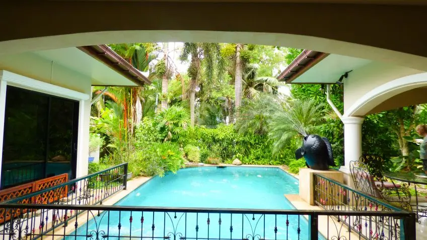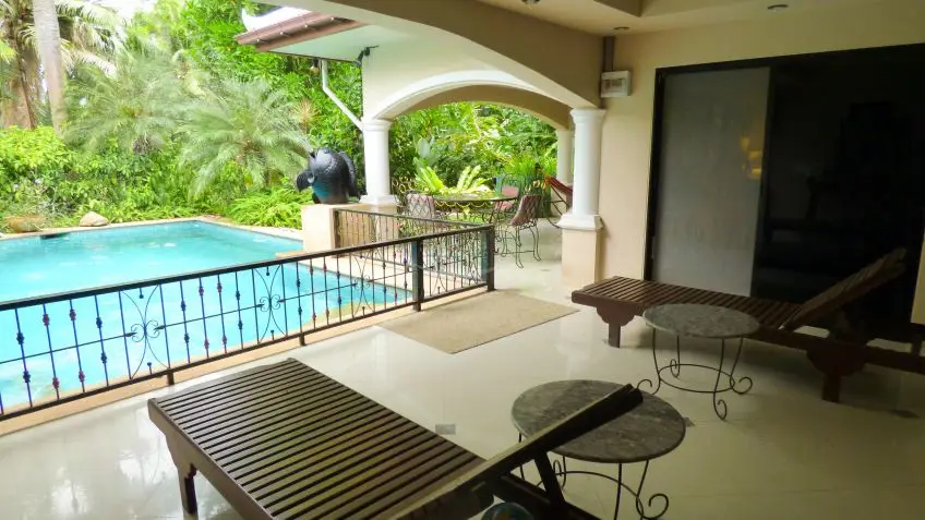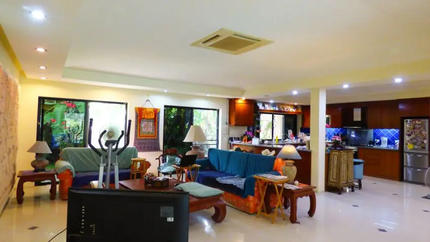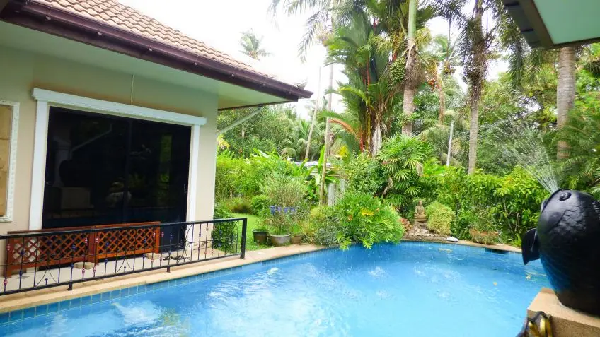 Family home with private pool Set on a huge 2,500sqm plot, this house offers undisturbed living, with great privacy. It features its own private pool and tropical garden. The house has been designed with a clever open-plan floorplan layout and constructed up to high western standards, including roof foam insulation. It is fully furnished with some of the furniture custom made Thaiteak and rosewood and has air conditioning throughout. There is a fully equipped European kitchen with a large breakfast counter and quality appliances, including a dishwasher. All 4 bedrooms are en-suite with bathroom tiles up to the ceiling. There is a separate, fully equipped laundry room and the garage is good for 2 cars. The house is equipped with an alarm system, a reverse osmosis water filter system, a sprinkler system for the garden and a deep well. The house is offered fully furnished, the Seller is open for negotiation if the Buyer would like to buy an unfurnished or a partly furnished house. For more information and to arrange a viewing, please contact us now.Facilities