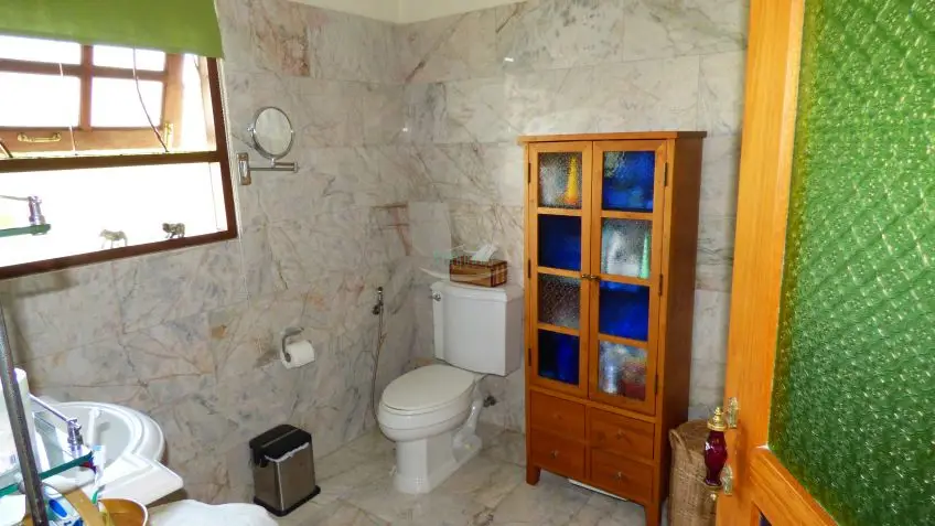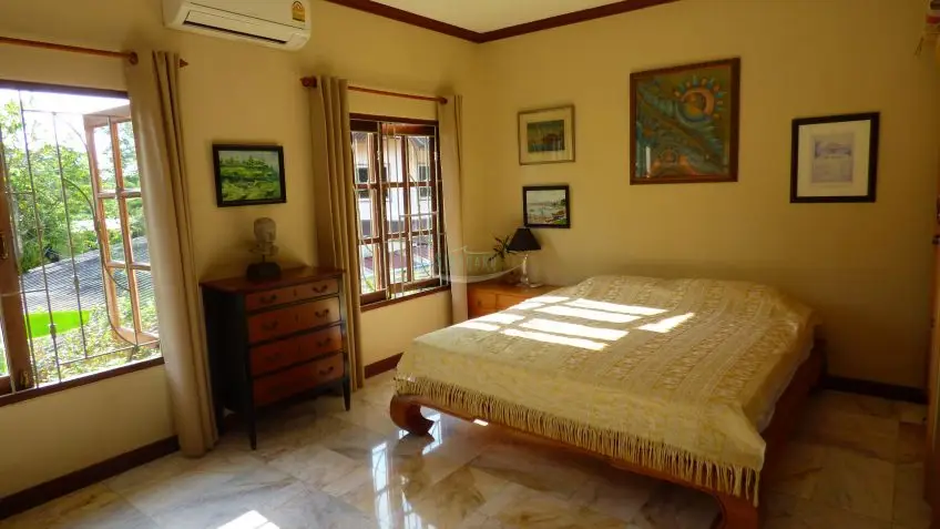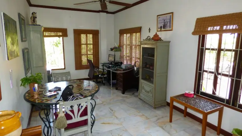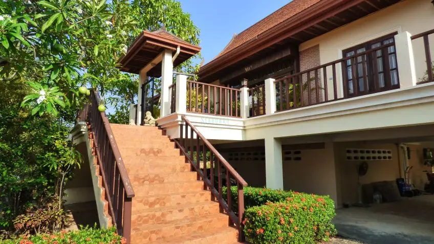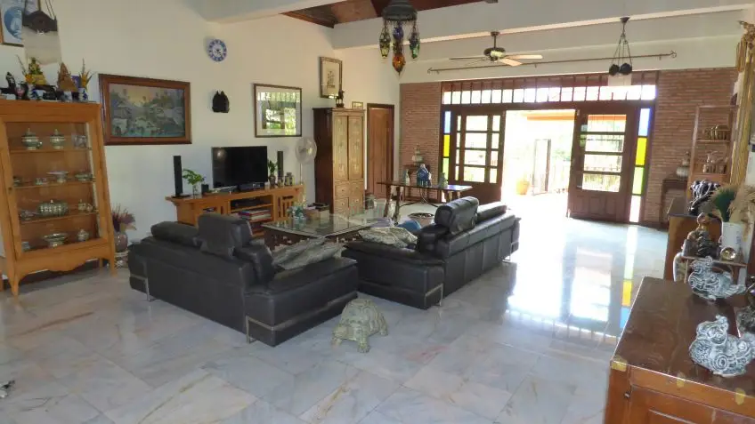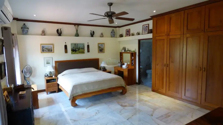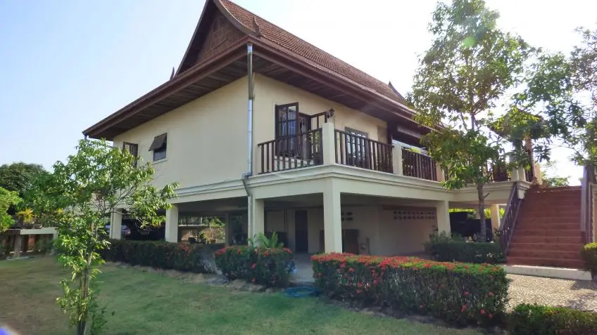 Private Villa with pool? A very substantial family house on a fantastic plot measuring almost 1.5 Rai, located in Huay Yai just off the Huay Yai Road in a very quiet location. This huge plot offers great accommodation both internally and externally. Entrance via a driveway with covered parking area leads into sprawling gardens with a large rectangular private swimming pool surrounded by palms, lawn, and shrubs. Internally the house is fully conditioned boasting 3 large double bedrooms and 4 bathrooms, a fully fitted European kitchen, and a separate Thai kitchen. The center point is the large, open living room with the terrace overlooking the landscape. The property is offered for Sale in Thai ownership with transfer fees and taxes split 50/50. For more information and to arrange a viewing, please contact us now.Overview