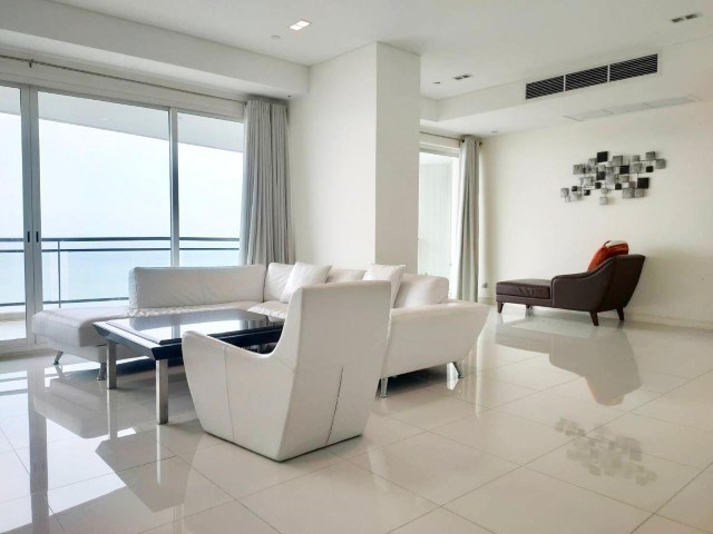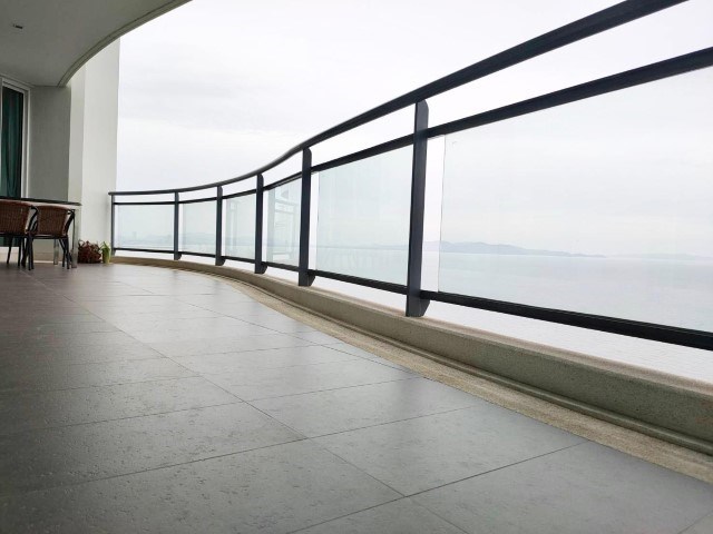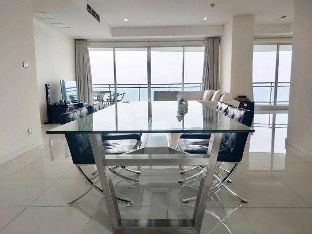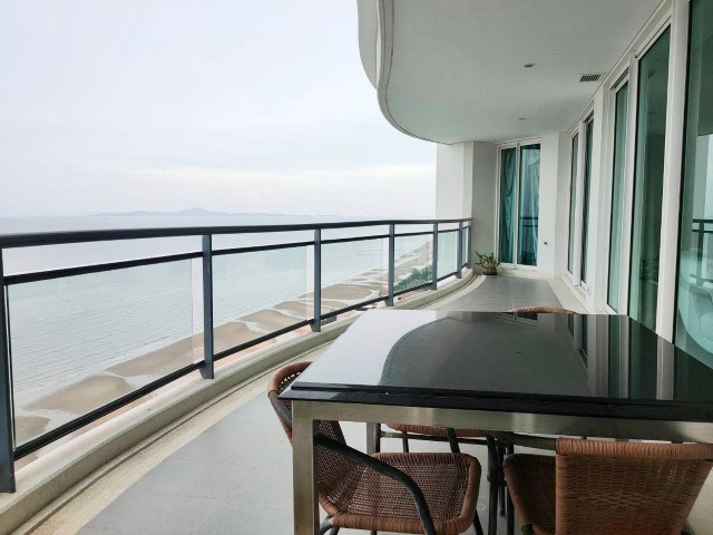Beachfront 3 bedrooms apartment for rent on floor 18th, panoramic sea view, Pattaya side,living area 217 Sqm, 3 bathrooms, large living area, fully furnished with modern style, European kitchen, 24 hour security, large communal swimming pool, fitness room. Price is include internet