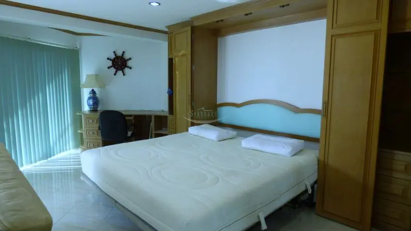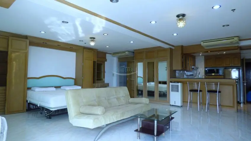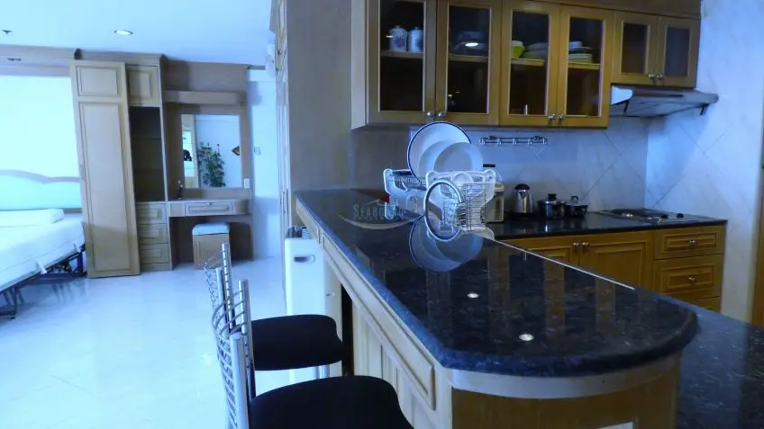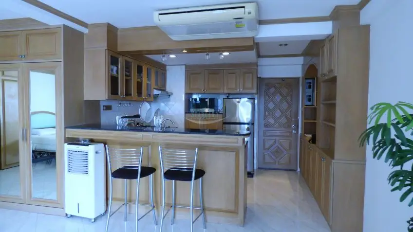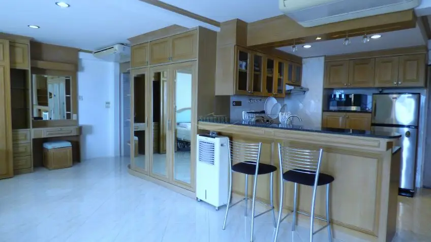 Jomtien Beach Condo? Located within meters of the beach, with beautiful views over Jomtien and the ocean, this 14th-floor apartment is offered for rent. Baht buses pass close by, and there are plenty of local amenities on the doorstep like ATM’s, and a Family Mart, so shopping for day to day items is a breeze. The complex also offers 2 swimming pools, gym, restaurant, bar, and a multi-story car park. The apartment is well appointed and a spacious studio apartment with a sea view balcony. The apartment is fully furnished to western standards including a European kitchen with breakfast counter, plus washing machine. Monthly rental fee is 25,000 Baht. At 6 months 20,000 Baht. Long term rental is available at 18,000 Baht Please contact us for more information now.Facilities