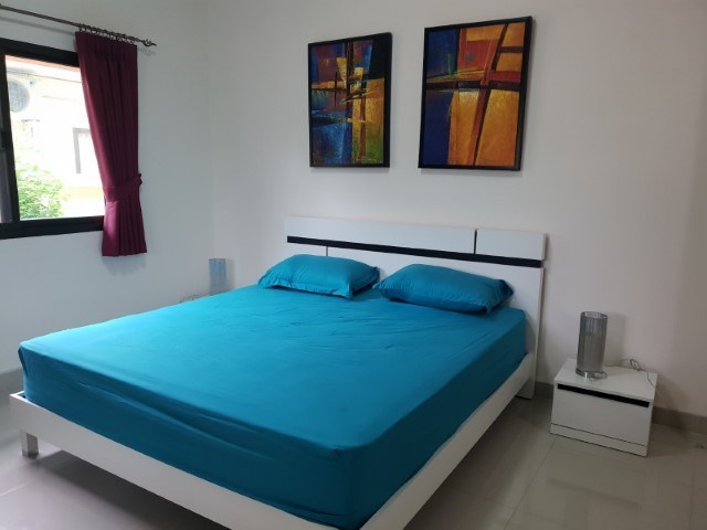 A great detached house with large open plan kitchen, ideal for a small family or young couple. It comes with 2 bedrooms, 2 bathrooms, and a respectable 133 sqm Living area, sat on land of 308 sqm. in size. This Fully furnished house with 24 hour security and communal pool also has access to the club house with a modern gym. The house has an Alarm system and keycard access system to the village for the security conscious.