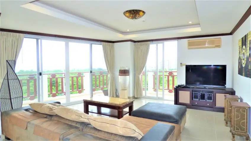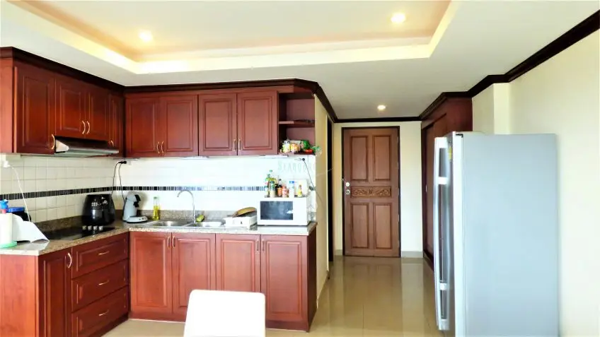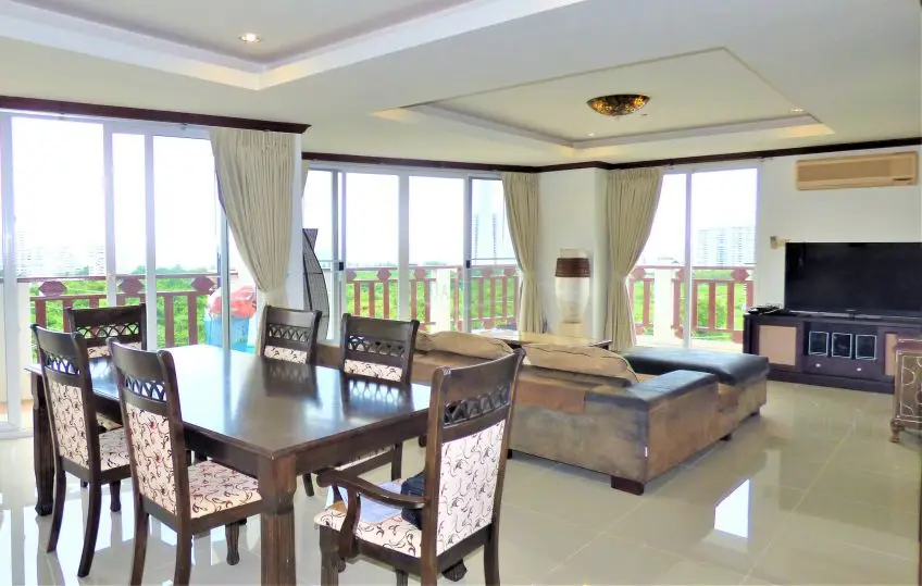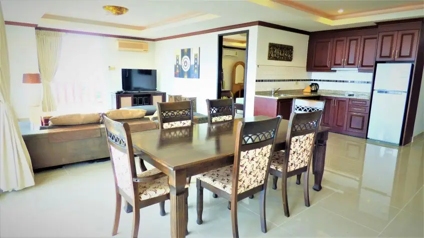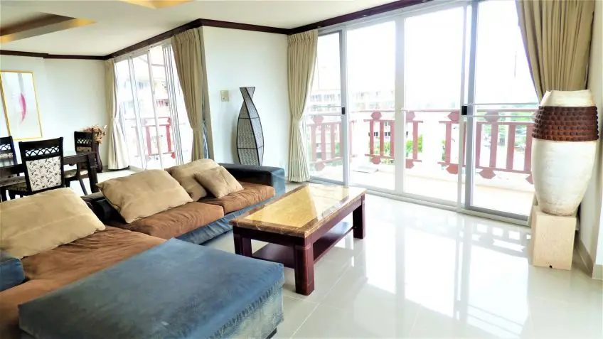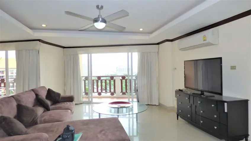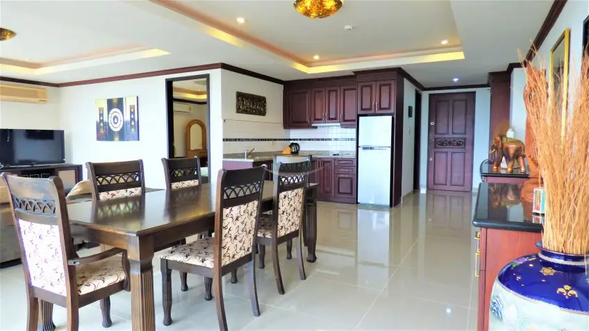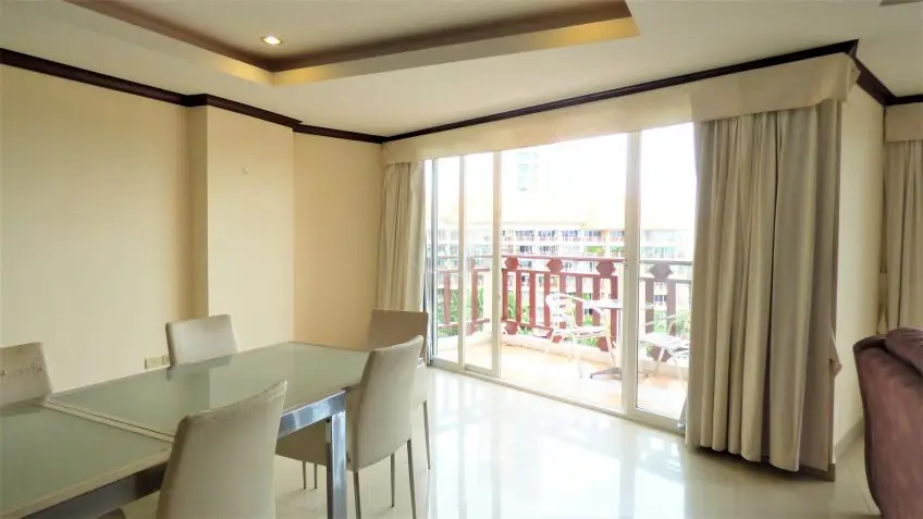 Royal Hill Resort is a condo development consisting of three low rise buildings on Thappraya Road in Jomtien, directly on the 24/7 bath-bus route. The two-bedroom apartment with four balconies is located on the 6th floor of the Royal Hill Building B. It is a fully furnished, spacious 194 sq.m property which is divided into 2 separate fully self-contained condos with their own front door but registered under one Chanote Title Deed. There are large balconies with sea views out to the sunset and Koh Larn across Pratumnak. Each condo is arranged as a 1 bedroom with European kitchen open plan to the lounge and dining space. The condo could serve as a home plus an income property, the building is popular by long term tenants. The Royal Hill Resort is very well managed and maintained and it offers good facilities: Parking inside the building, 24-hour security, CCTV, swimming pool, gym, garden / BBQ, playground/kids area. The apartment is held in Foreign name and taxes and transfer costs supposed to be split 50/50. Contact us now for more information and to arrange a viewing.Facilities