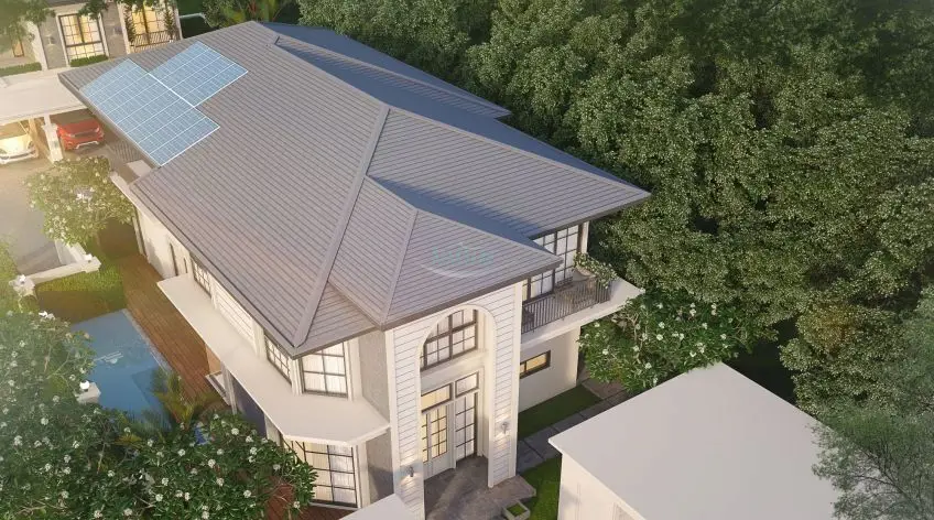 Rangsi Village Project, the latest quality house project from Rungsii is located in Nong Prue - Bang Lamung. Cleverly designed detached houses with a distinctive identity that looks classic, simple, beautiful, warm, dignified, reflecting a uniquely superior level of living with improved functionality and economy. Approximate project area: 5 rai 52 square wa House type: Single house Number of units: 27 units Number of floors: 2 floors Approximate starting land area: 50 sq m - 109 sq m. Approximate initial usable area: 203 sq m - 460 sq m Location : Nong Prue The project is scheduled to be completed : 2023 FACILITIES 24 hour security system (security guard) Housekeeper takes care of cleanliness, picks up trash, gardener takes care of the garden. Install CCTV (CCTV) in the project. Anti-theft electric fence system Enter-exit with a key card system underground power system spare water tank The road within the project is 8 meters wide. It uses energy from the sun's rays. Private House TONRAK Starting price 7,560,000 baht and (including installation price of 5 kW solar) EXCLUSIVE HOUSE Starting price 14,975,000 baht (including installation price of 5 kW solar) For Sale Pre-Sale Book now ! For new customers, receive free special gifts. The highest value is about 1 million baht. The free package includes a swimming pool. Wardrobe in every bedroom european kitchen home alarm system Air conditioning in every bedroom free transfer fee