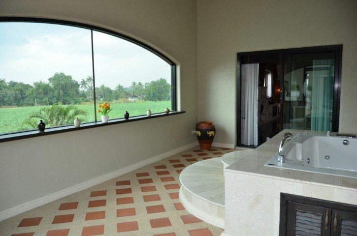Luxury house with large landscape garden and private pool, located at Mabprachan, fully furnished with high class furniture, land 637 sqw ( 2548 sqm) living area 1176 sqm, 6 bedrooms, 8 bathrooms , European Kitchen, Alarm system and CCTV, 24 hours security , underground electric system for whole project. This house got prize ' Thailand Property Awards 2015 high recommend