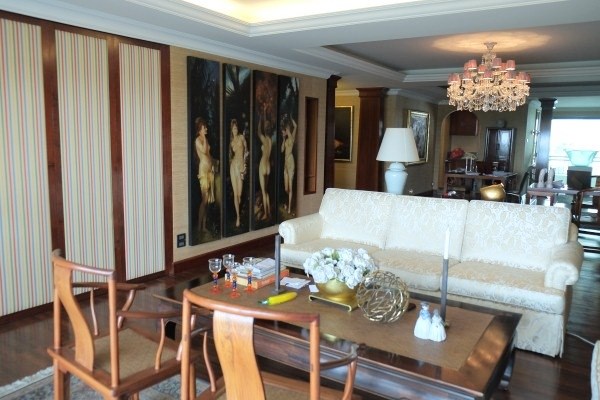 Rare opportunity to buy an excellent decorated and furnished apartmentin this exclusive building: 2 beds en-suit incl. an extra large master suit, guest toilette, sep. kitchen, large sea view balconies, 249 sq.m.