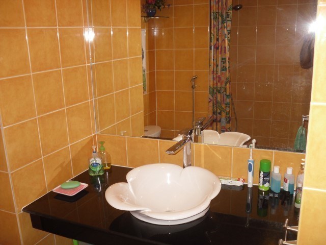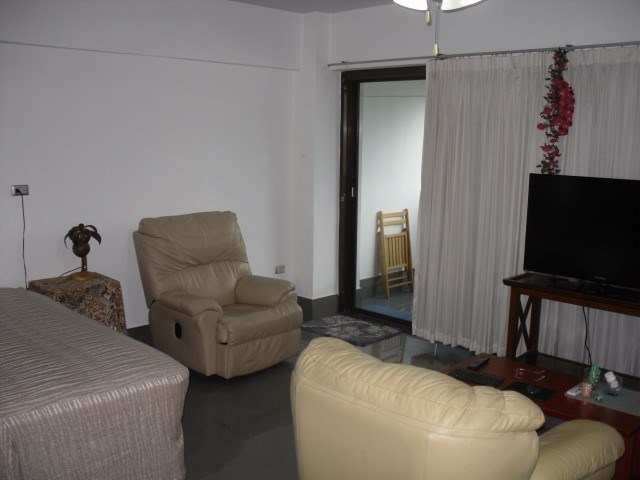 Large 1 bedroom apartment on floor 6th, Corner unit, living area 48 Sqm. 2 balcony one very small with outside aircon unit one big 2 by 4 meter 8 sqm, fully furnished small kitchen shower hot water washing machine big fridge freezer, Flat Screen Television 40 inches, microwave oven induction coking cookware appliances, 24 hour security , elevater, communal swimming pool