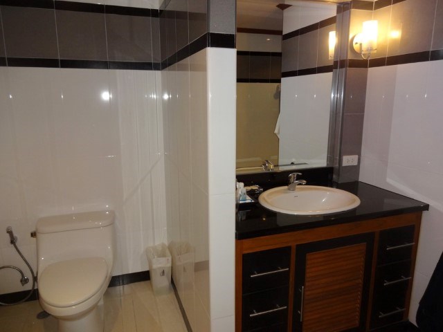 1 bedroom apartment on floor 3rd, partial sea view, located at Pratamnak Hill Soi 5, Living area 94.68 Sq.m, 1 bathroom, fully furnished, living room with flat screen TV, European kitchen, 2 air conditions, cable TV , internet WiFi, security safety box, mosquito nets, tinted glass sliding door, 24 hours security, roof top pool, Gym at the basement, underground parking, foreigners name.