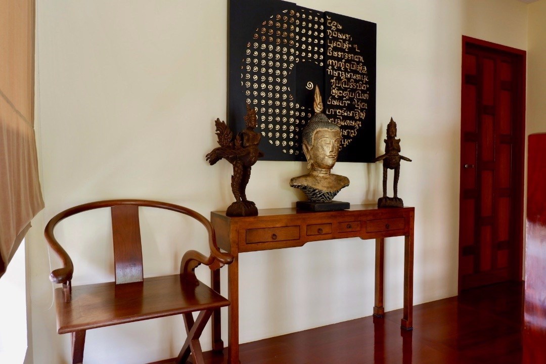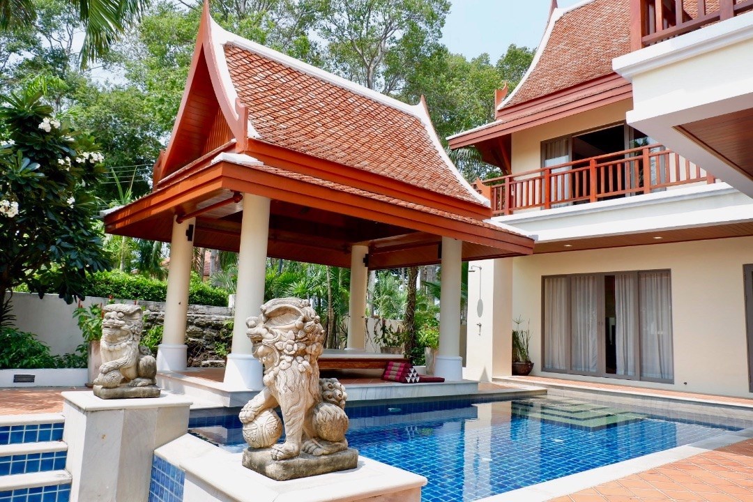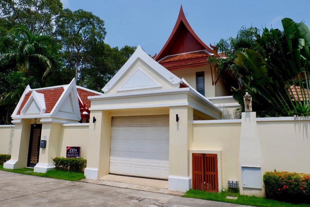Thai-Bali inspired walled-villa with private sala and pool in gated estate just meters from Bang Sare beach