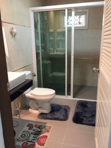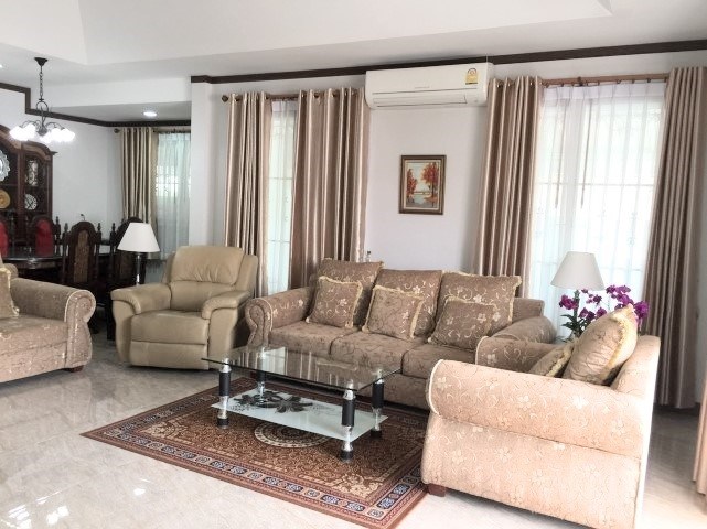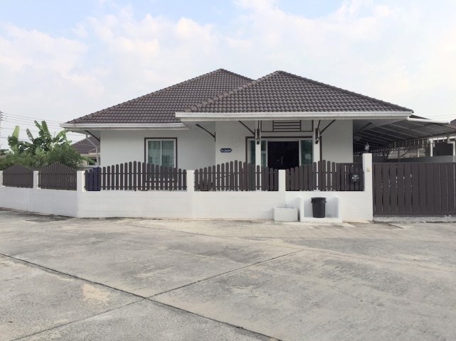 Family house, corner plot with 3 bedrooms, 3 bathrooms, land size 109 sqw (436 sqm) ,European Kitchen, 4 airconditioner, 4 ceiling fan, party furnished, located at East Pattaya, just 5 minutes from Sukumvit Road, close to Satit School, market, minimart and restaurant.