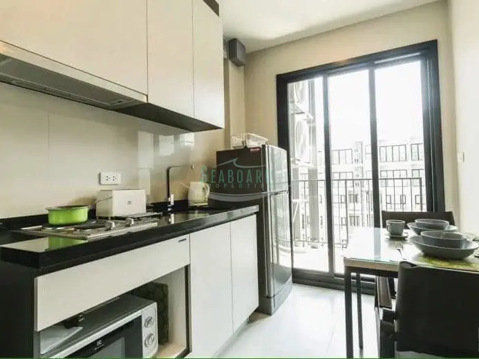The Base Condo Building A This high rise condominium development is located in the heart of Pattaya City, along the Pattaya 2nd road, and is within walking distance to several major shopping malls and the beach. This modern 1 bedroom apartment with a balcony is situated high up on the 25th floor with a sea view, and offers fully furnished and comes with a separate European kitchen area, lounge area with TV & air-conditioning, a queen-sized bedroom with a fitted closet. Project facilities are listed below: Building A 1st floor - Lobby, Laundry Room 3rd floor - Sitting Area 31st floor - Rooftop Swimming Pool, Panoramic Deck, and Night Lounge Building B 1st floor - Lobby 3rd floor - Swimming Pool, Fitness Center, Kids Room, and Aerobic Room 27th floor - Day Lounge and Rooftop Garden Car Park Building Facilities 5th floor - Children Playground and Half Court Basketball It is available for RENT long term with a 2-month deposit. Offered for rent on a long term basis at 12,000 Baht per month. Please contact us now for more information.Facilities