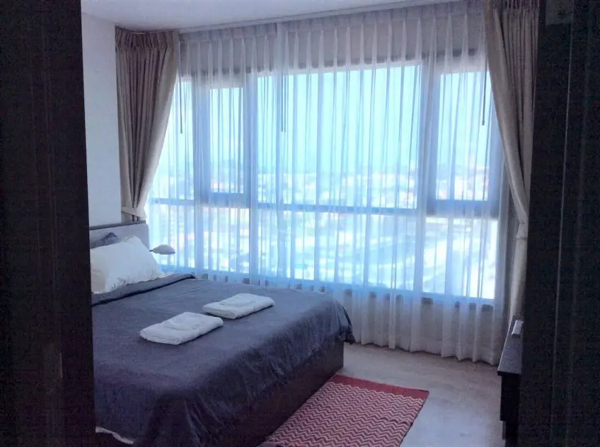 The Base Condominium A 2-bedroom apartment with a balcony, located on floor 16, with beautiful views of Pattaya Bay and the city. It is 52 sq.m. in size, is fully furnished, and well decorated in modern, western style. The apartment has a kitchenette with a sink, hob, hood, microwave, and granite countertop. The master bedroom with en-suite bathroom. The Base condominium project is located in the heart of Pattaya City, on Pattaya 2nd Road and across the street from the landmark “Central Festival Shopping Center". Facilities: Swimming pool, Exercise room with quality equipment, garden and outdoor recreation area, rooftop garden, Wireless internet, 24-hour security, and CCTV. Parking inside the building.