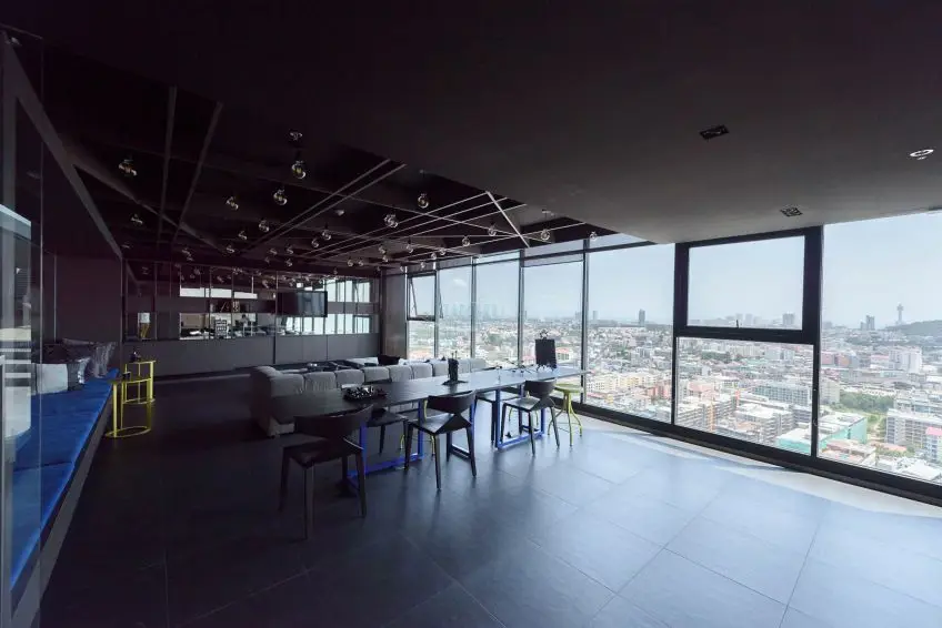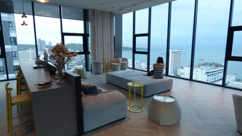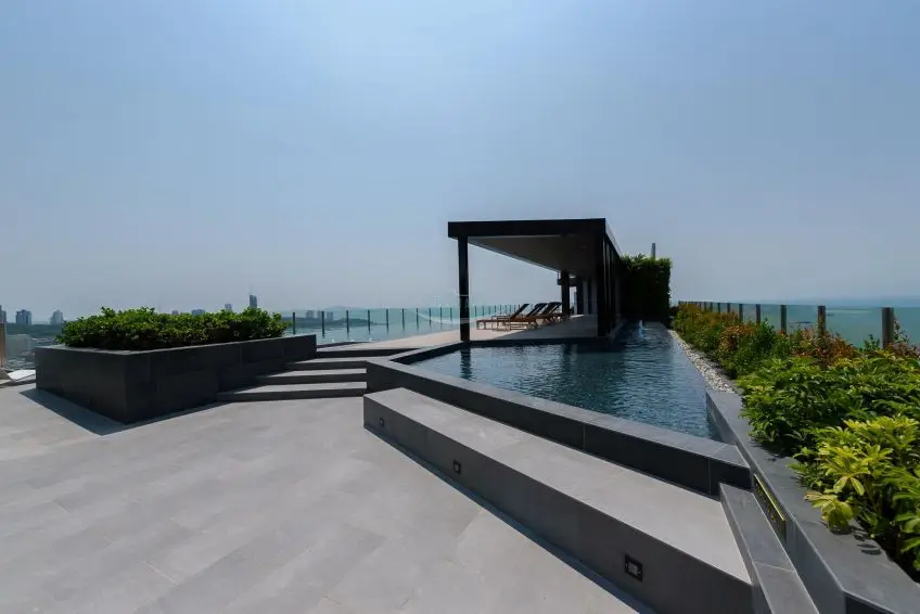 Buildings: Resort Amenities and Open Lobbies, a peaceful Oasis right in the middle of Central Pattaya. - Awesome Panoramic Beach and City Views from both buildings. - Swimming Pools - Lap Infinity Pool on rooftop with panoramic view, 5th floor pool next to fitness center, kids pool. - Fitness Center, Yoga Room, Kids Toy Play Room. - Rooftop Gardens, 360-degree panoramic viewing deck, Night Lounge. - Basketball Court, Kids Park, Garden Terrace. - Large open grounds ideal for jogging with long stretches over 100+ m long. - Free high-speed WiFi Common Areas. - 24/7 Security Guards and CCTV.
