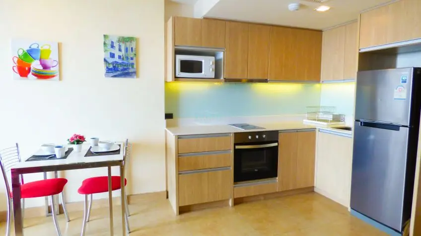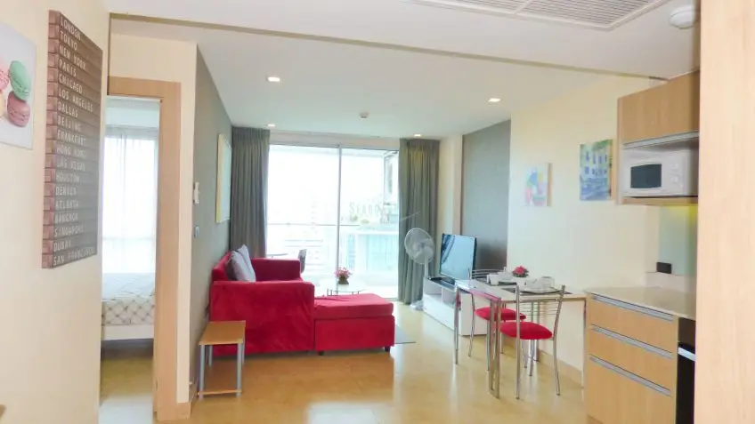 The Cliff Condominium This is a beautiful studio apartment with a balcony on the 16th floor and offers ocean views’. It is an open plan unit with lots of natural light and it has modern, quality furniture throughout including European style kitchen, sofa, dining table set, LED-TV, King sized bed, built-in wardrobes, and modern fitted bathroom with hot water shower. Key card room entrance and full air conditioning. The building facilities: 24/7 security with key - card system, modern lobby area, underground car parking, communal swimming pool with water slides and separate kids play pool, Jacuzzi and poolside fitness center. This apartment is offered for SALE and for RENT under Foreign ownership, transfer & taxes fee are split 50/50 between the Seller and the Buyer. For more information and to arrange a viewing, please contact us now.Facilities