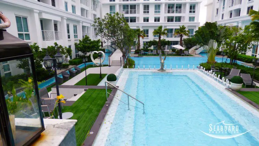 The Orient Resort & Spa Jomtien boasts a number of amenities to augment the comfort of its residents. An expansive swimming pool area encompasses a children’s pool, gazebos, pool bar, and huge pool Jacuzzi, as well as ample sundecks and a spa. Additional features include a state-of-the-art fitness center, 24/7 reception desk, WIFI Internet throughout the premises, underground car parking and optional housekeeping service. For safety, the condominium provides around-the-clock security with the latest CCTV camera system, a security card entry system, and 24/7 manned security- guards. A new fully furnished 1 bedroom apartment with balcony on floor 5 with lake view is offered for long term rent. 6 months at 12,000 Baht, 12 months at 11,000 Baht per month. For more information, please contact us now.Facilities