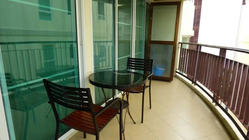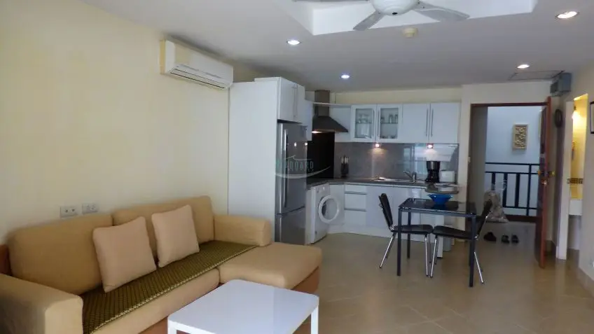 Paradise Residence 1 An 8 storey condominium located in Jomtien Soi 7, less than 300 meters to Jomtien Beach. This spacious 1 bedroom apartment is fully furnished and has a living area of 54 m² including the balcony. The fitted European kitchen is well equipped with electrical appliances, the apartment has air-condition, LED TV and a washing machine. Facilities of the building: Juristic office on the ground floor, a communal swimming pool, underground parking, 24-hour security guards, CCTV and cleaning service. Family Mart close by. Cable TV and Wifi is for FREE from the building. Offered for long term rent, 6 months at 26,000 Baht, 1 year at 22,000 Baht per month. Please contact us for more information now.Facilities