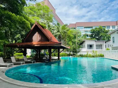 The Park Jomtien is a low-rise condominium surrounded by a lush green tropical garden. A spacious modern condo with a clever 1 bedroom floor-plan layout and a very good living area and large balcony. Very nice stylish furniture, TV and internet connection in living space with dining area. The condo has a beautiful European kitchen, with modern appliances, including a washing machine. The apartment is decorated to high western standards. The bathroom is with double basin counter and a jacuzzi bathtub. The project is very private and has very good security, underground parking, a tennis court, gym, and swimming pool. Offered for Sale and for Rent. Foreign ownership. For more information and to arrange a viewing, please contact us now.Facilities