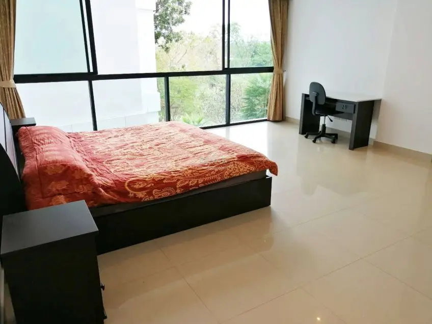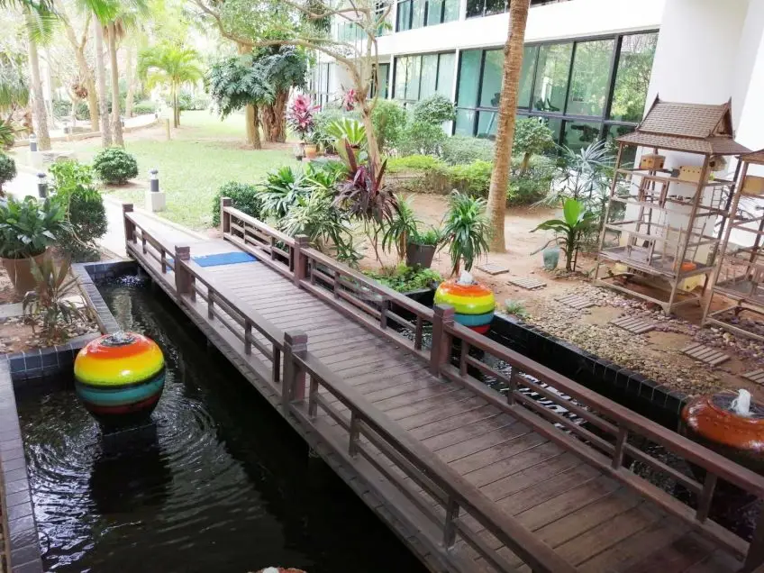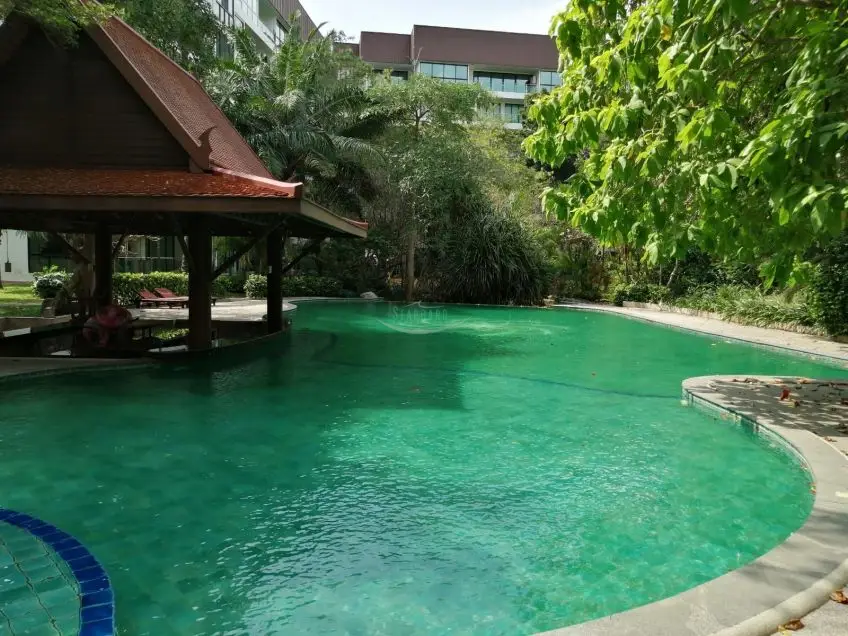 THE PARK Condominium Jomtien for Rent An excellent low rise condominium project under foreign management with a unique tropical garden, large pond, swimming pool, gym, tennis court, covered car parking and security around the clock. Comfortable One - Bedroom Apartment on Floor 4 with large balcony offering a very relaxing view of the tropical garden with a large pond. This apartment has a very clever floorplan, is fully furnished including a western style kitchen, and it offers a separate guest toilet with washing machine. The bathroom is equipped with double basin, bathtub, and shower. The apartment is situated to the garden side and is very quiet. Offered for Rent with a 1-year contract at only 20,000 Baht per month. Please contact us now for more information.Facilities