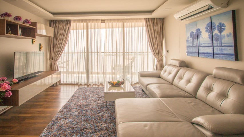 From each room and a private balcony of a spacious apartment offers a gorgeous, frontal view of the sea and the island of Koh Larn. Each room has a modern split system and LED TV. (3 LED TV, 3 air-conditioner).