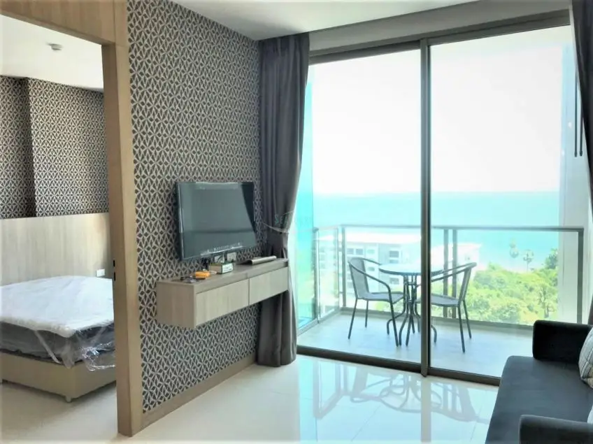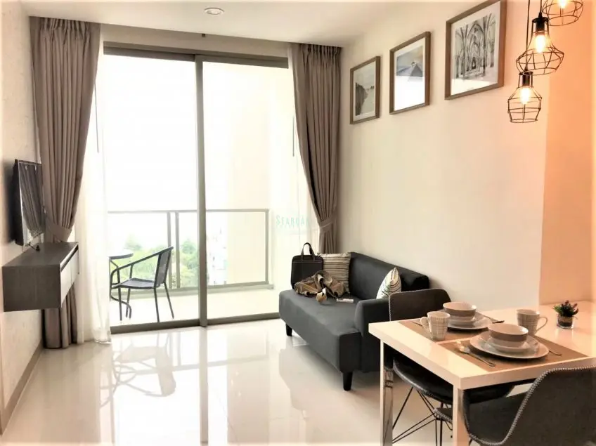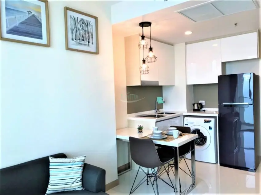The Riviera Wongamat A western-style 1 bedroom condo with balcony on floor 13 in an upmarket beachside residential development. It comes fully furnished with built-in European kitchen and electrical equipment, washing machine, open plan lounge area with a sea view and air-conditioning throughout, queen-sized bedroom with built-in closet, separate hot water shower area & toilet. Very good sea views from the balcony. This is a luxury high-rise condominium development located along Wongamat Beach. It is a cutting edge 2 tower design and commands some great views of one of Pattaya’s finest beaches. Wongamat Beach is situated at the Northern end of Pattaya Bay and has established itself as one of the most prestigious area of Pattaya. Here you will find 5-star world-class hotels standing side by side with various high-quality Condominium developments each being serviced by beautiful long sandy beaches. The building provides excellent facilities: Communal swimming pools on high and ground floors, multi-level sun-deck areas and lots of waterfalls and fountains, a children’s playroom, pool table, fitness center, sky Jacuzzis, a spacious sala & lounge area for relaxation, 24hr security guard, key card systems, plenty of car parking spaces. The apartment is offered for long term rent, with a one year contract at 20,000 Baht per month. For sale at 4.9 Mil. Baht, registerd in foreign ownership, with transfer fees and taxes, split 50/50. For more information, please contact us now.Facilities