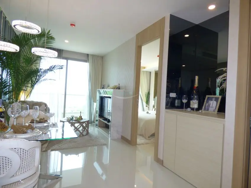 The Riviera Jomtien is a luxury high-rise condominium development located close to the Jomtien Beach. The Riviera is truly at the leading edge of imaginative modern architectural design with a strong focus on Buyer requirements. This 27 sq.m. studio apartment is high up on floor 31, is partly furnished with fitted European Kitchen, living and dining areas, bedroom comes with fitted closet, luxury fitted bathroom with shower. The balcony offers spectacular sunset sea-views. Being a part of this glamorous lifestyle, means entering a desirable and privileged world, with access to some of the best and well thought-out facilities available in Pattaya. RESIDENCE FACILITIES: Various swimming pools on upper floors and at the tropical garden, Various children’s pools. Multi-level sun-deck areas, Various water features. Kids’ club & children’s playground, Water slides. Extensive fitness room with sky views. Lush tropical landscaping, Floating pavilions & sala’s. Large open green areas, Extensive recreational area. Private elevated garden areas, 31st floor private sky garden with sala’s. Hotel styled drop-off area’s, Open air resort styled lobby. RESIDENCE SERVICES: 24-Hour Security & WiFi Internet SKY TERRACE: 37th Floor – large pool and decking areas 42nd Floor – Infinity edge sky-pool with decking areas, entire 42nd floor dedicated for owners recreation. Sky jacuzzis, sunken pool beds Owners large lounge area and sunset terrace Sala & lounge relaxation areas Resale unit offered at reasonable price for quick sale now, in FOREIGN ownership. For more information and to arrange a viewing, please contact us now.Facilities