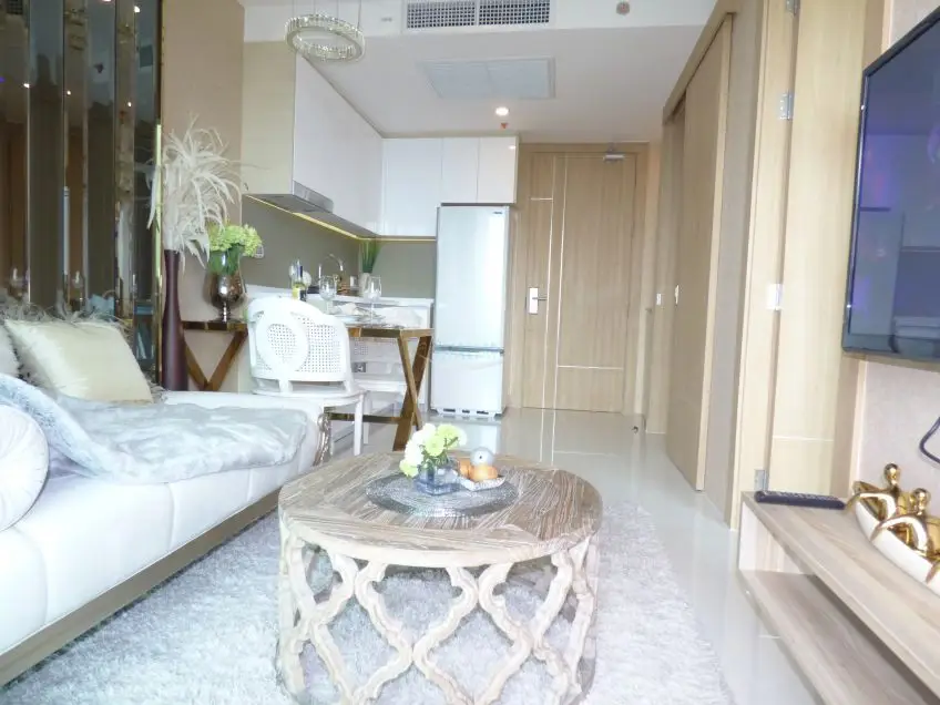 Riviera Jomtien Beach This is a new luxury high-rise condominium development located along Jomtien Beach. It is a cutting edge design and commands some great views of one of Pattaya’s finest beaches. This brand new 1 bedroom resale condo with balcony is situated high up on floor 28. It comes partly furnished with built-in European kitchen and electrical equipment, open plan lounge area with a sea view and air-conditioning throughout, separate hot water shower area & toilet. This apartment offers spectacular sea views. The building provides excellent facilities: Multiple swimming pools on high and ground floors, multi-level sun-deck areas and lots of water falls and fountains, a children’s play room, pool table, fitness center, sky Jacuzzi's, a spacious sala & lounge area for relaxation, 24/7 security guard, key card systems, car parking spaces inside the building. Offered for Sale under foreign quota (transfer direct with developer). For for more information and to arrange a vieving, please contact us now.Facilities