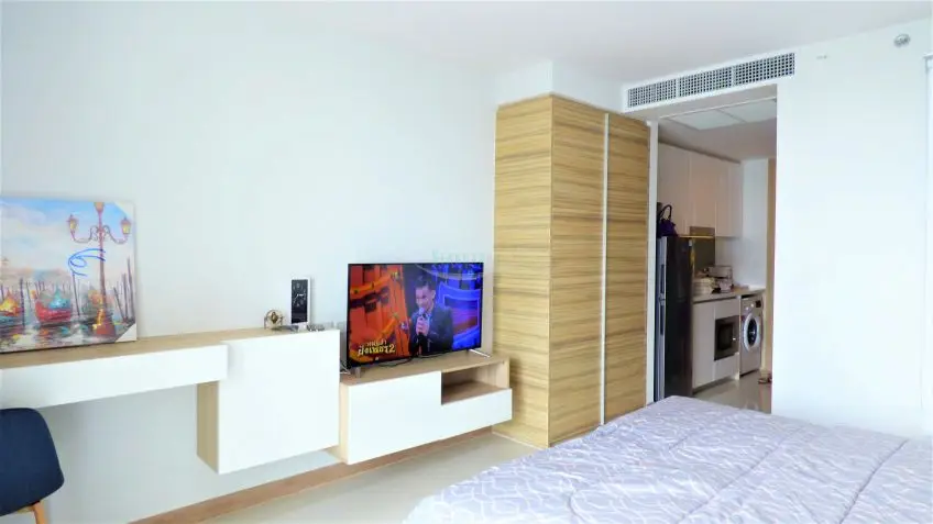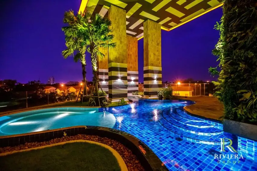 Riviera Jomtien A newly completed luxury high-rise condominium development conveniently located along Jomtien 2nd road offering highly desirable lifestyle facilities. This new 33 sq.m., studio apartment is situated on floor 22, offering panoramic views of the city and Pattaya Bay. It is fully furnished and fitted with a European kitchen, air-cons, built-in wardrobes, modern bathroom, and electrical appliances. There is a total of around 1000 top-class luxury apartments in various sizes comprised of amazing communal facilities such as indoor car park; lush gardens; state of the art gymnasium; swimming pool decks with stunning skyline views; concierge services and much more. Please contact us for more details.Facilities