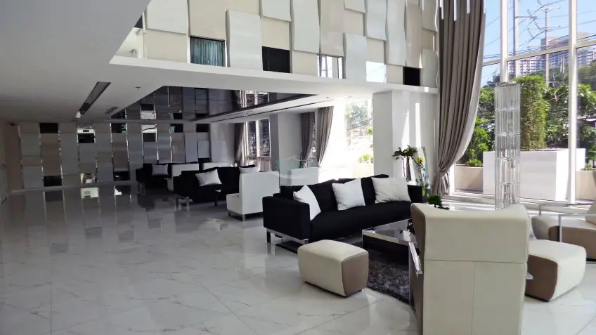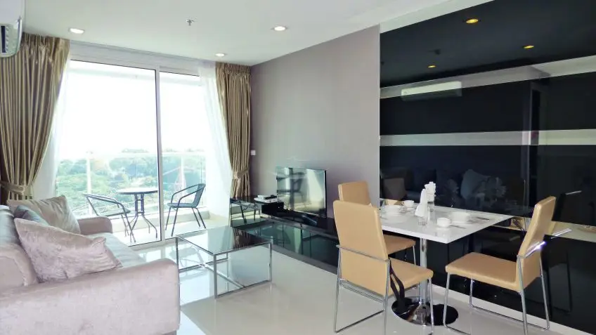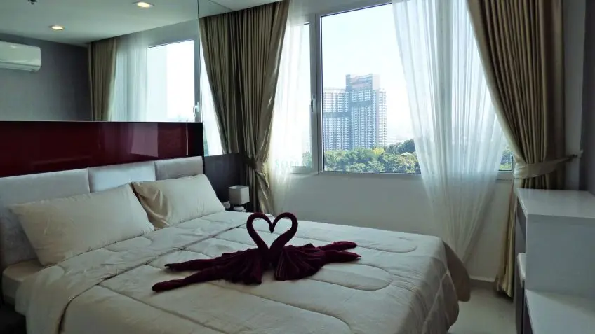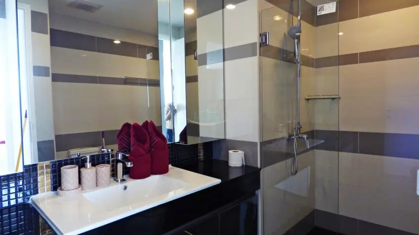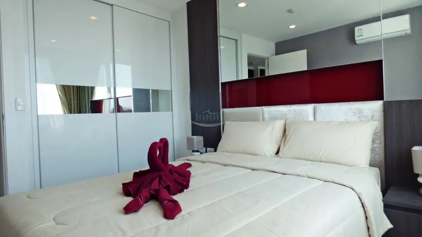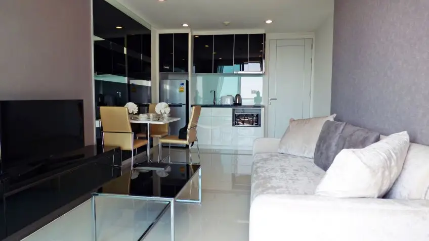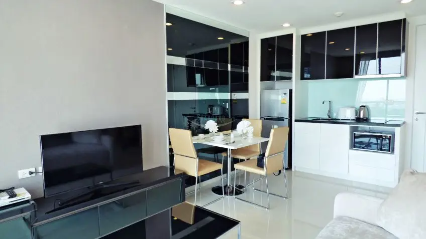 The Vision Condominium is a high-rise tower located on the highest point on Pratumnak Hill. This fully furnished 39 sq.m property is situated on floor 13 of the building. This residential project is located just minutes from Pattaya, Jomtien, and Cosy Beach. The inside of the apartment is very modern, with fashionable high gloss built-in furniture in the living room to match the European kitchen cabinets, and there is also stylish wallpaper throughout. The bedroom also has built-in furniture and wardrobes. The Vision Condominium offers stunning 270° sea views from the 20th floor, plus an infinity pool, sky lounge, and fitness center. Access to the building is via a key card system and there is underground car parking and 2 high-speed elevators.