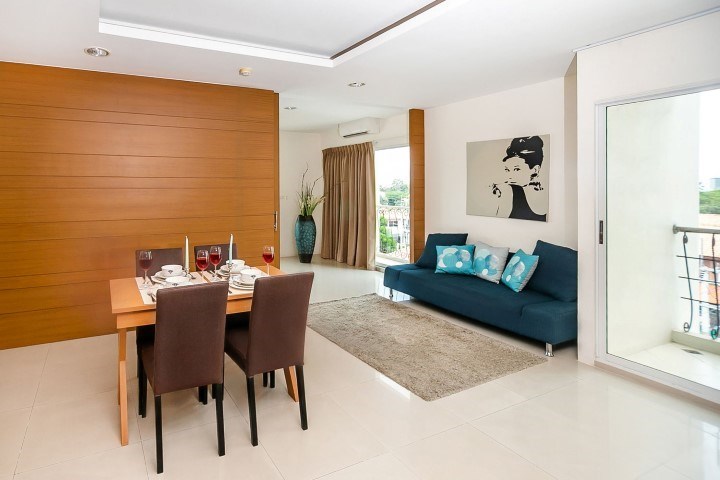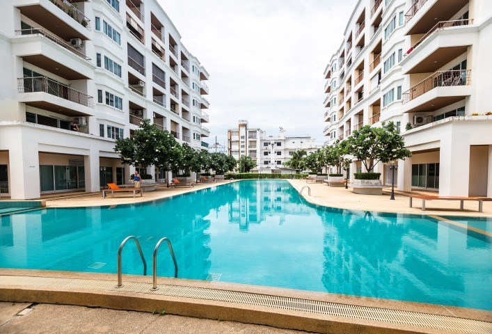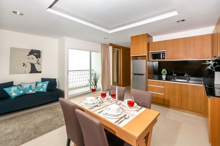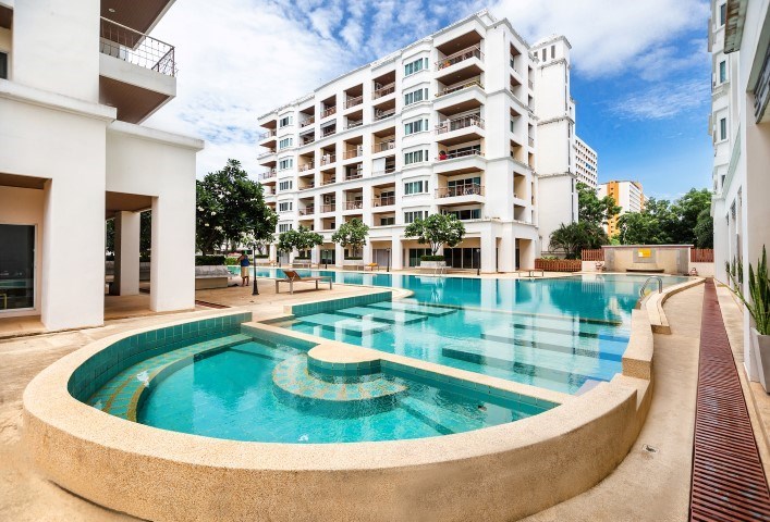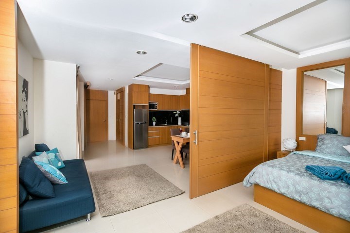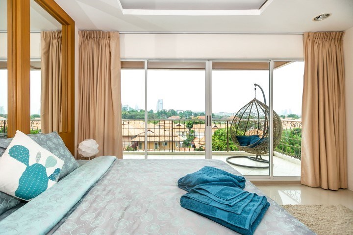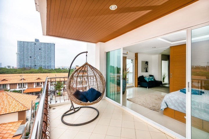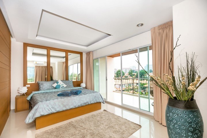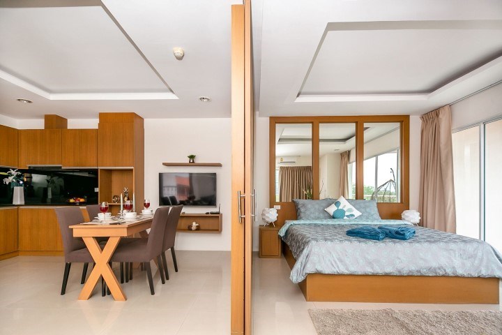 Large studio with sliding door on floor 4th living area 62 Sqm, 1 bathroom, sea view, fully furnished with high class furnishing, foreign name, located at Thepprasit Rd., Jomtien area, 24 hour security, fitness room, communal swimming pool, taxi, close to minimart, restaurant, Jomtien Beach