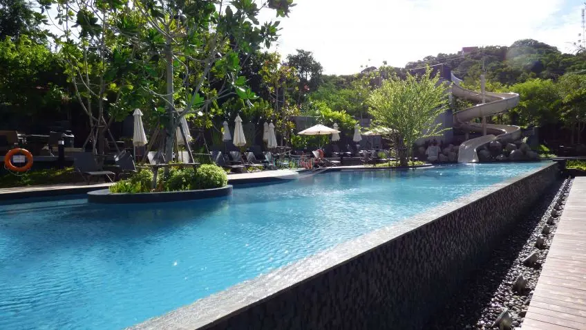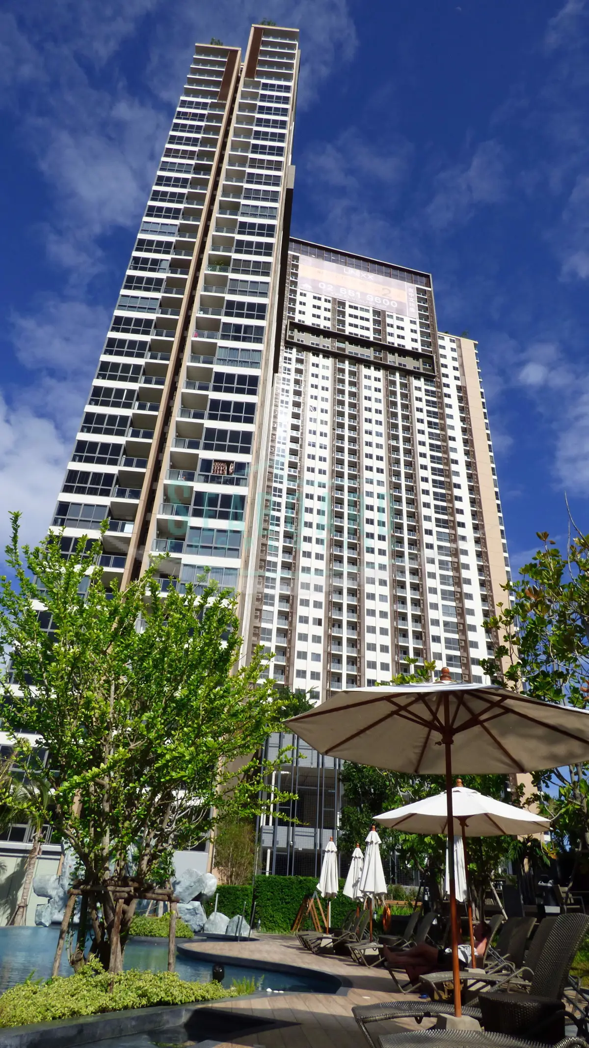 Unixx Condominium is a luxurious high-rise residential complex situated in the heart of the city. It provides modern amenities and communal facilities similar to those found in hotels. The property includes an infinity lap pool, sun decks, a children's pool, a sports area, a fitness center, a sauna, a laundry room, and parking for cars and motorbikes. Security measures are robust, with key-card access and a front desk service.